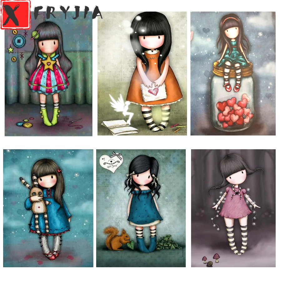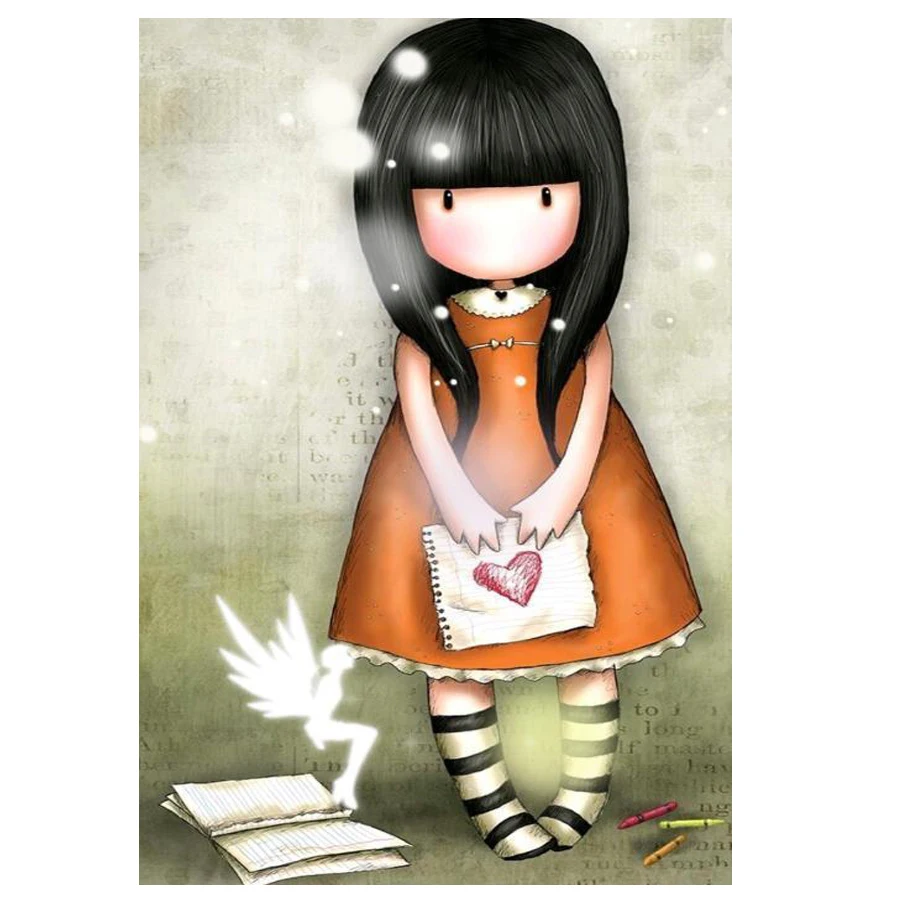 Алмазная 5D картина сделай сам, полноразмерная картина из круглых страз мультяшная милая маленькая девочка, 3D вышивка крестиком, мозаика, домашний декор