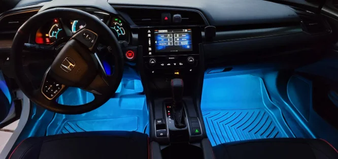 Snadna instalace Skryl jsem celly vodiach uvnitjokrajjspodnhi palubnhi Desky, pouze one vodiach them odkryety, pouval jsem chirou gorili obtroustroustou добрже се држи и там jsou světla jasnye и lze Ho ztlumit Nebo rozjasnit, chtěl jsem yen it, В модре světlo odpovitalo MEMU ruck, но в селе osvětlenhi hudbou them mnohem uspokojivějski.