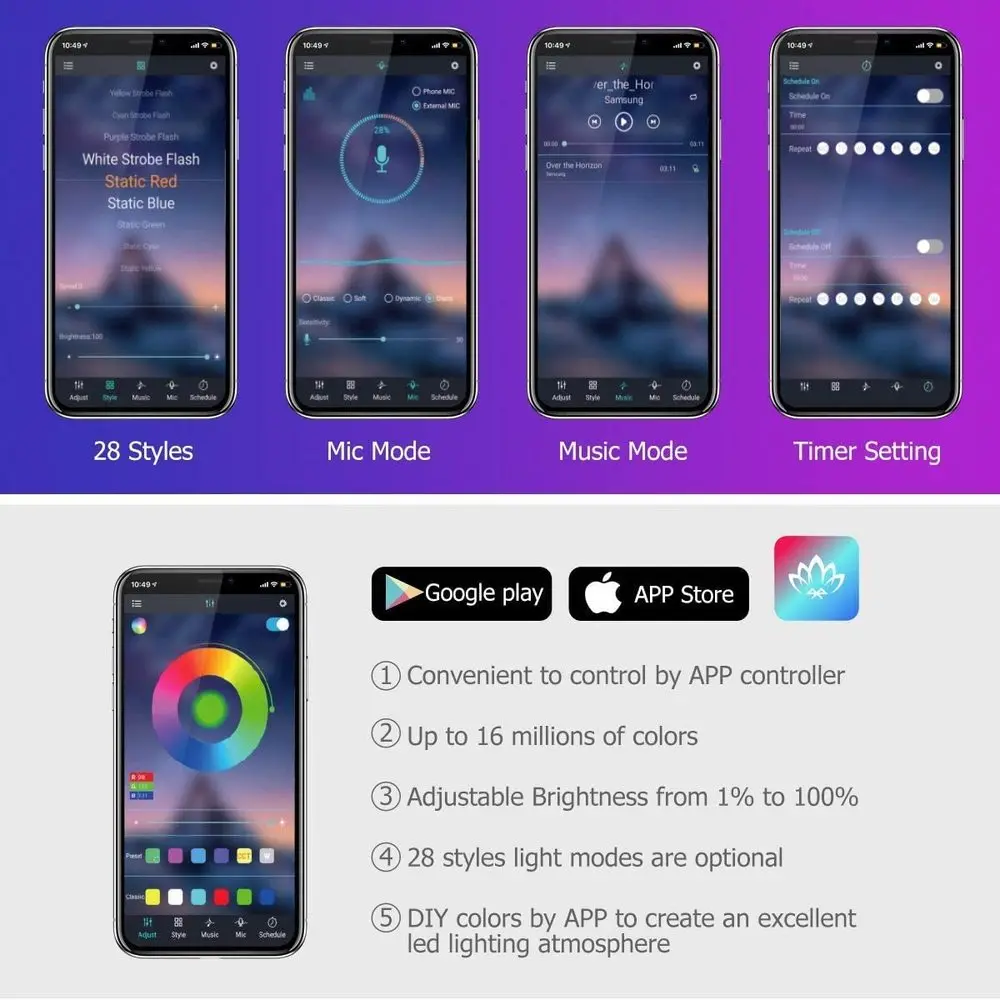 Erstaunliche Lichter! Das waren Prozent für mein Auto und ehrlich gesagt für jedes Auto! Es ist eigentlich nicht legal, während der Fahrt helles Licht in Ihrem Auto zu haben, aber dank der erstaunlichen App können Sie die Helligkeit, Farbe, das Muster der Lichter und die Reihenfolge, in der Sie sie sortieren möchten, steuern, wenn dies der Fall ist. Ich kann dieses Licht nur empfehlen, Sie werden nicht enttäuscht sein