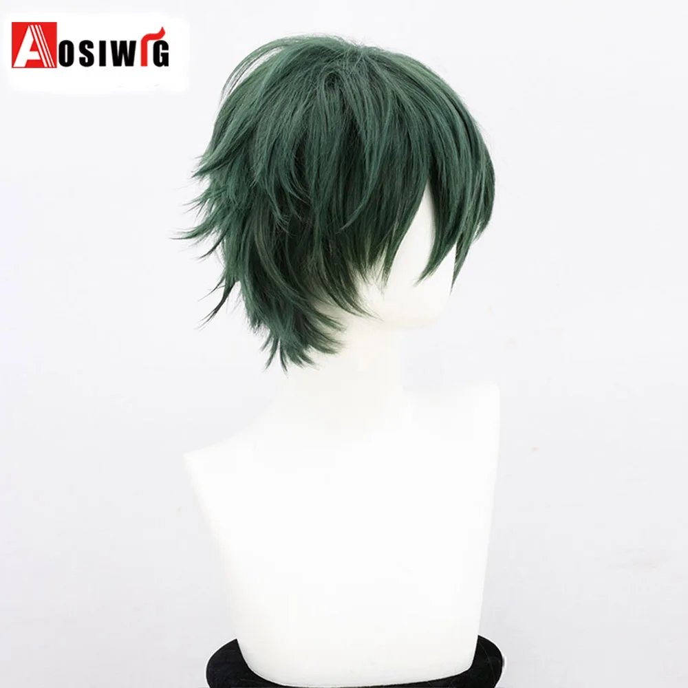 Парик для косплея Aosi, термостойкий парик из искусственных волокон тёмно-зеленого цвета с короткими волосами для вечеринки, Хэллоуина