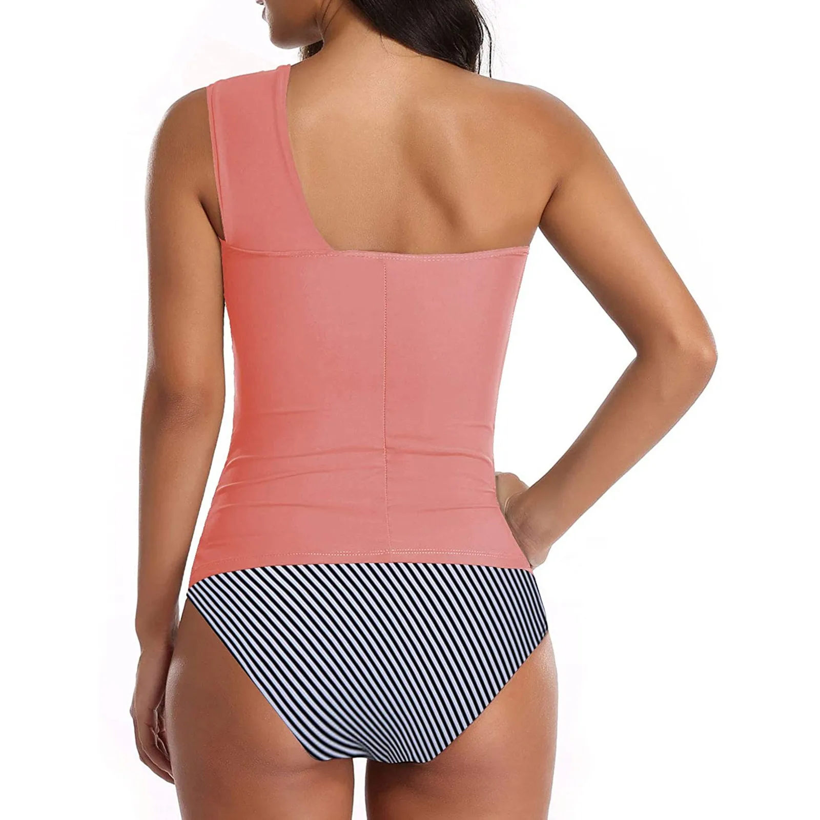 Женский сексуальный купальник на одно плечо, женский купальник с высокой талией, женские купальники из двух частей, танкини, купальный костюм 2021, модная одежда для пляжа # 3G