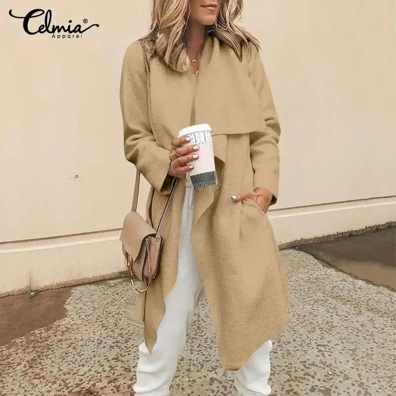 2021 Celmia женские кардиганы с длинным рукавом, модные куртки, дли...