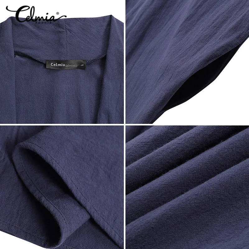 Женский кардиган Celmia, повседневный плиссированный Длинный плащ-кимоно с длинным рукавом и карманами, верхняя одежда для осени 2021