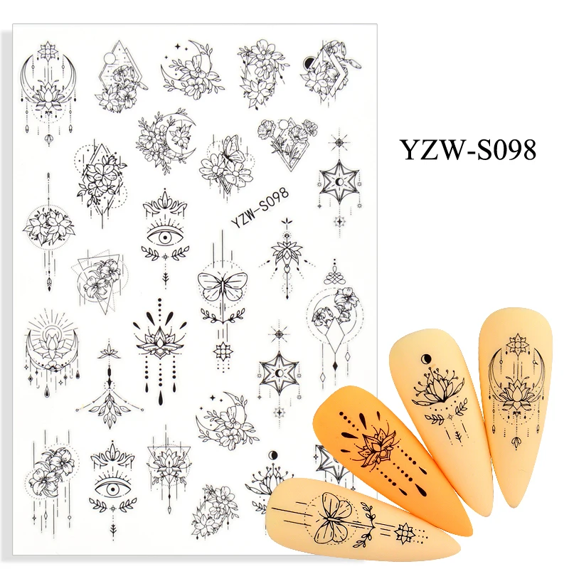 1 шт. наклейки для ногтей слайдер черный цветок лист Геометрические...