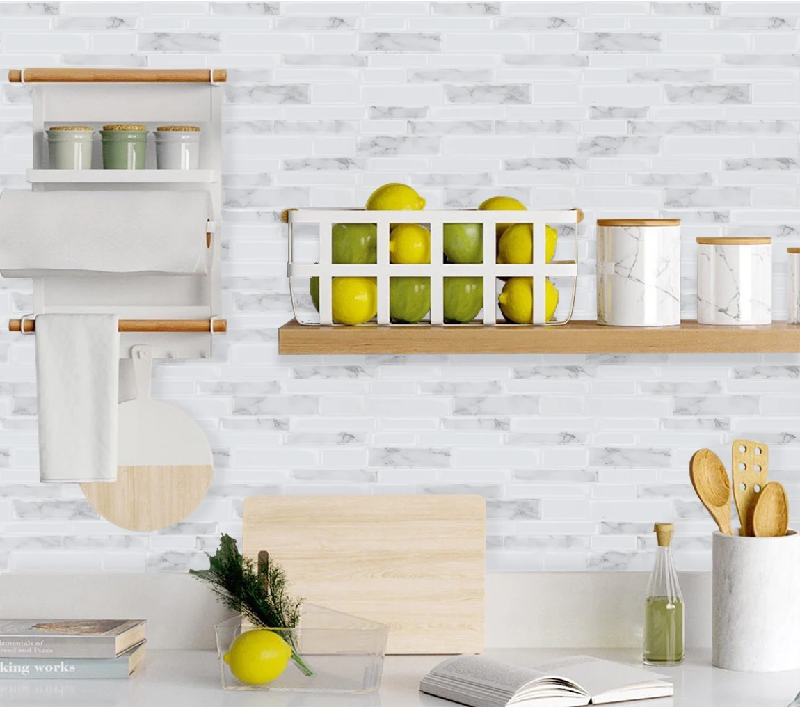 Очистку и наклеивание плитки можно использовать на всех гладких, чистых и сухих поверхностях, таких как окрашенный гипсокартон или даже прямо над керамической плитой. Просто снимите и приклейте, легко установить. Все, что вам нужно, это линейка, карандаш, тряпочка и ножницы. Этот проект сэкономит вам время и деньги по сравнению с реальной плитой. Не беспокойтесь, что плитка не подходит по размеру Вашей стены, так как ее легко разрезать.