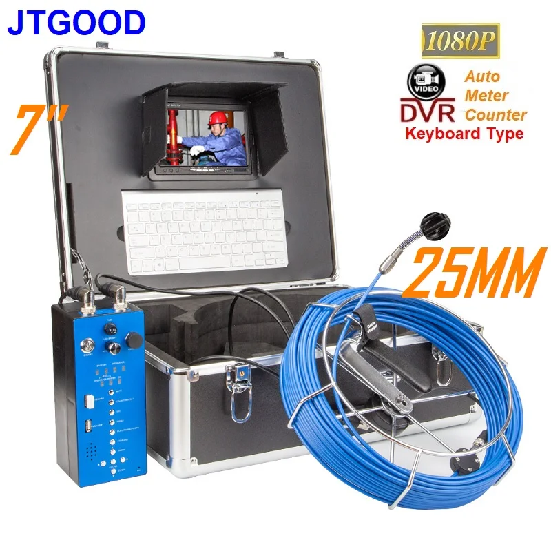 Камера для осмотра труб wФункция подсчета ИС-метра, на дисплее может отображаться Глубина камеры в трубе. Это покажет, как долго кабели помещаются в трубы на мониторе.Эта камера для инспекции трубJTGOOD 7 "монитор HD1080P видеорегистратор счетчик клавиатура труба Инспекционная камера дренажный канализационный трубопровод промышленный эндоскоп провод труба инспекция видеокамера. Который можно использоватьR 25 ммДиаметр трубы выше.