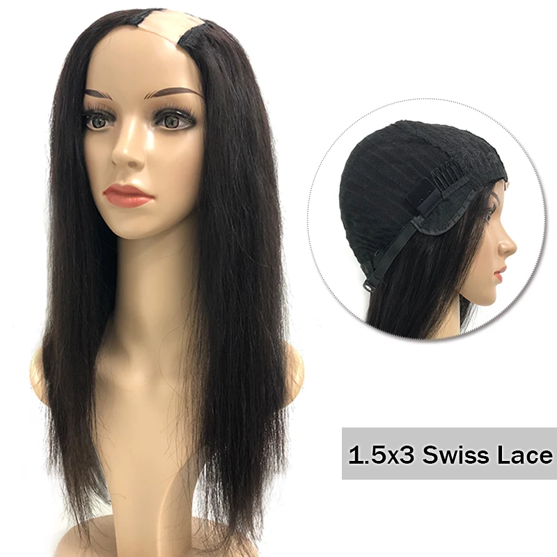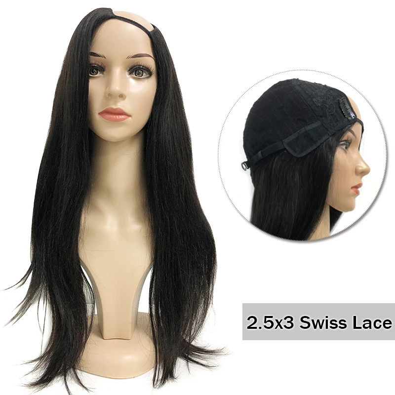 U-образный парик без клея, прямые парики из натуральных волос, плотность 180%, парики из волос Ali Queen для женщин, бразильские человеческие волосы Реми, натуральные черные