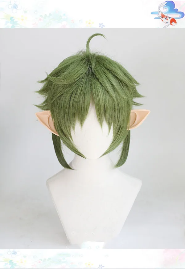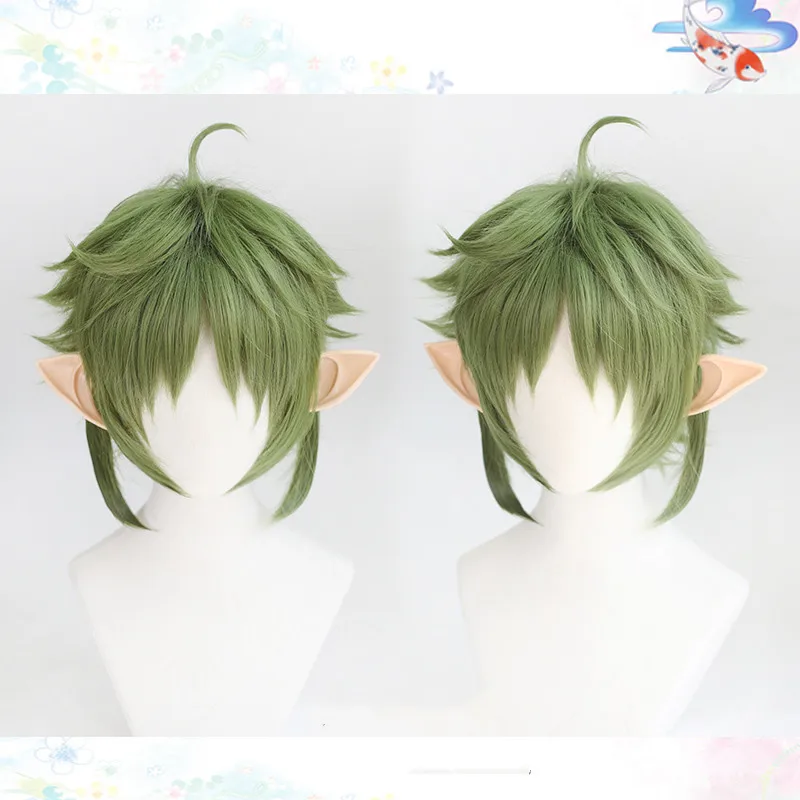 Беспроблемный парик для косплея сильфит серая крыса, зеленые короткие термостойкие синтетические волосы Mushoku Tensei + шапочка для парика