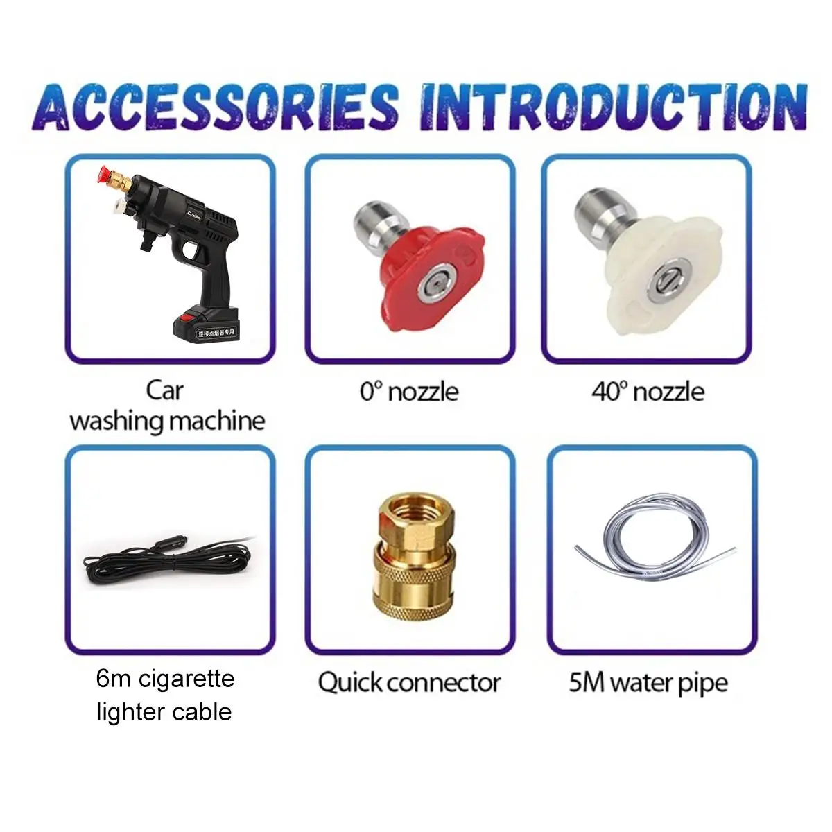 Особенности:-Когда вы путешествуете на открытом воздухе, просто положите водопроводную трубу в ривулет, ведро или любой источник воды, чтобы начать мыть ваш автомобиль.-Мытье автомобиля в любое время инн в любом месте-Беспроводная конструкция, чистота в любое время и в любом месте.-Высокопроизводительная литиевая батарея, попрощайтесь с проблемами с тягой.