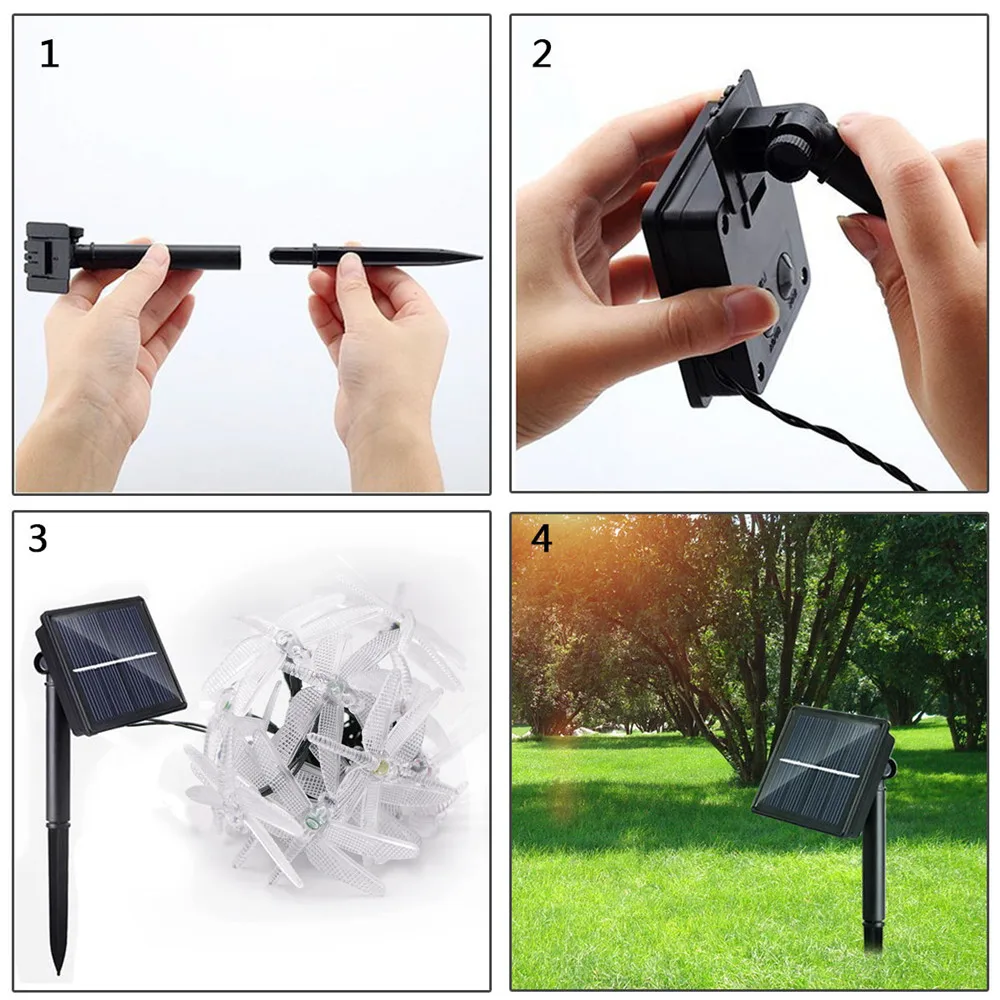 4 м 20LED солнечный светильник Стрекоза Водонепроницаемая гирлянда для наружного сада двора Рождественская Свадебная вечеринка для дома