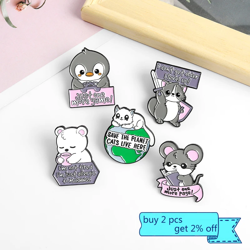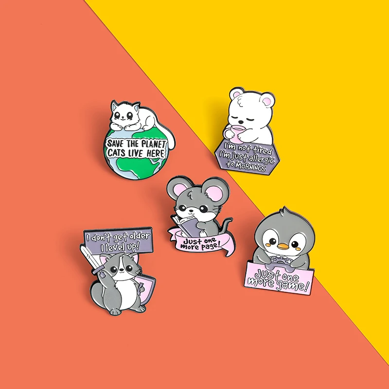 Индивидуальная забавная эмалированная заколка в виде пингвина, кошки, крысы, медведя, енота, броши на одну страницу игры, значок на лацкан рубашки, Значки для сумок, подарочные украшения в виде животных