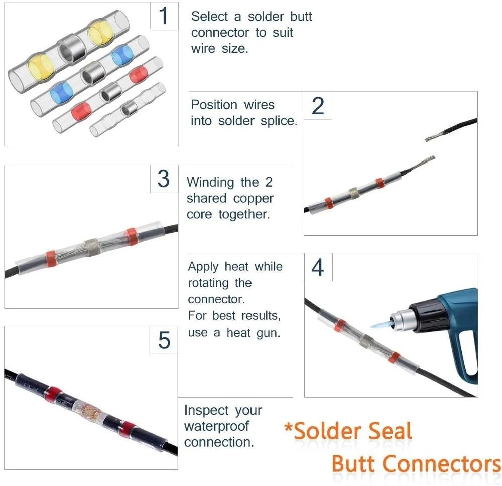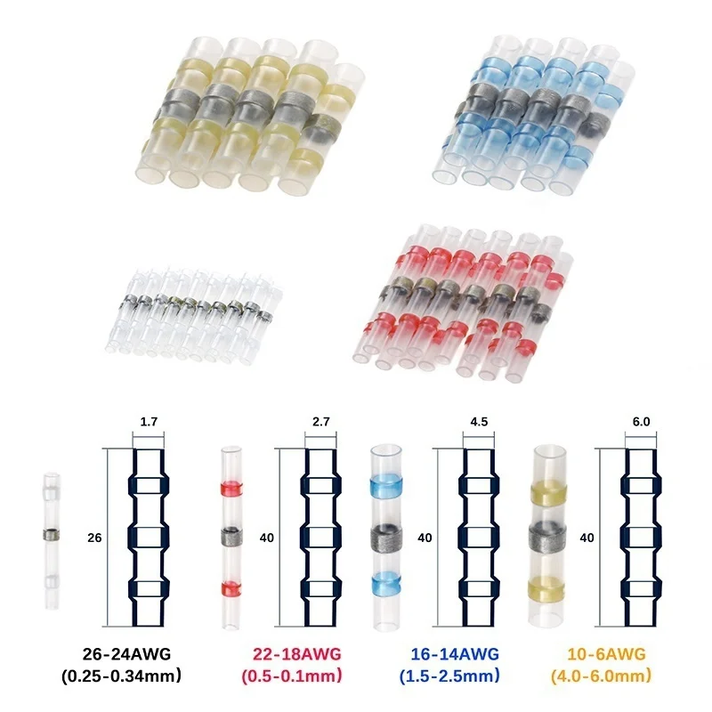 Термоусадочные стыковые зажимы, водонепроницаемые клеммы под пайку,...