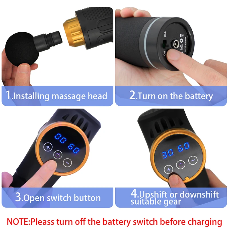 Профессиональный электрический массажный пистолет, аппарат для глубокого расслабления мышц, для фитнеса и снятия боли с сумок, 30 скоростей
