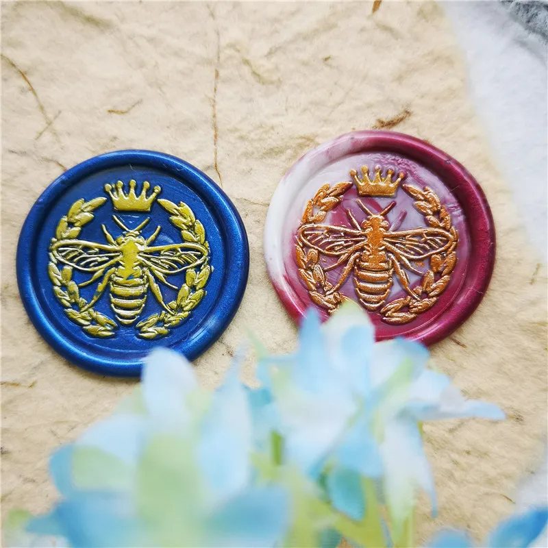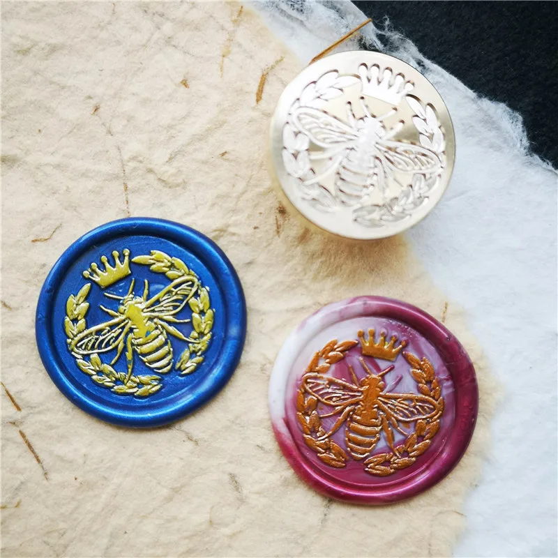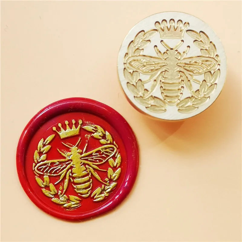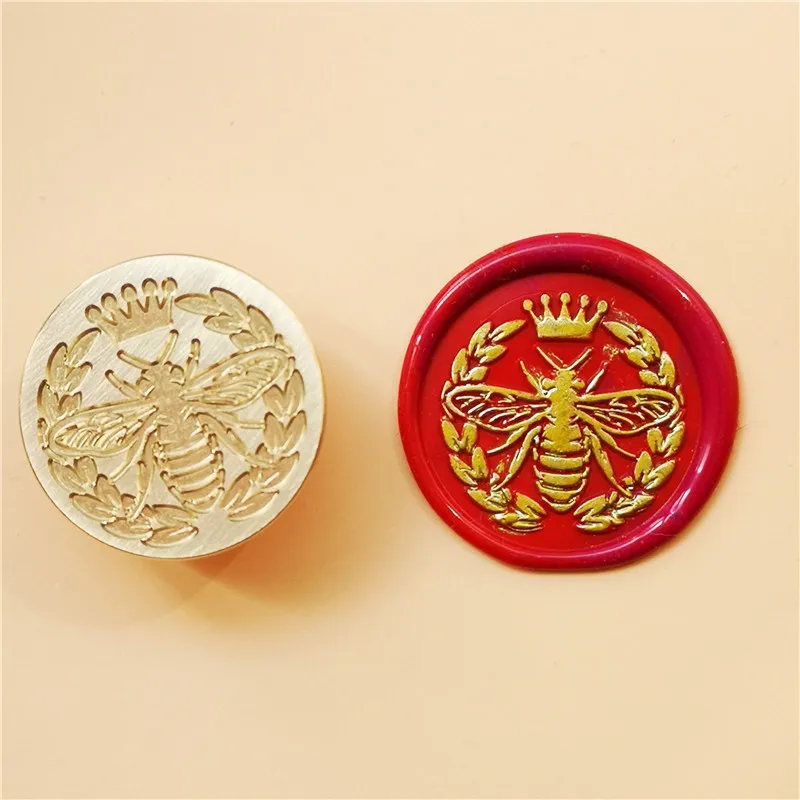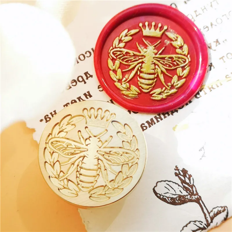 Штамп с воском Crown bee, изысканная краска, деревянная ручка, DIY старинная печать в стиле ретро, персонализированная печать воск высокого качества