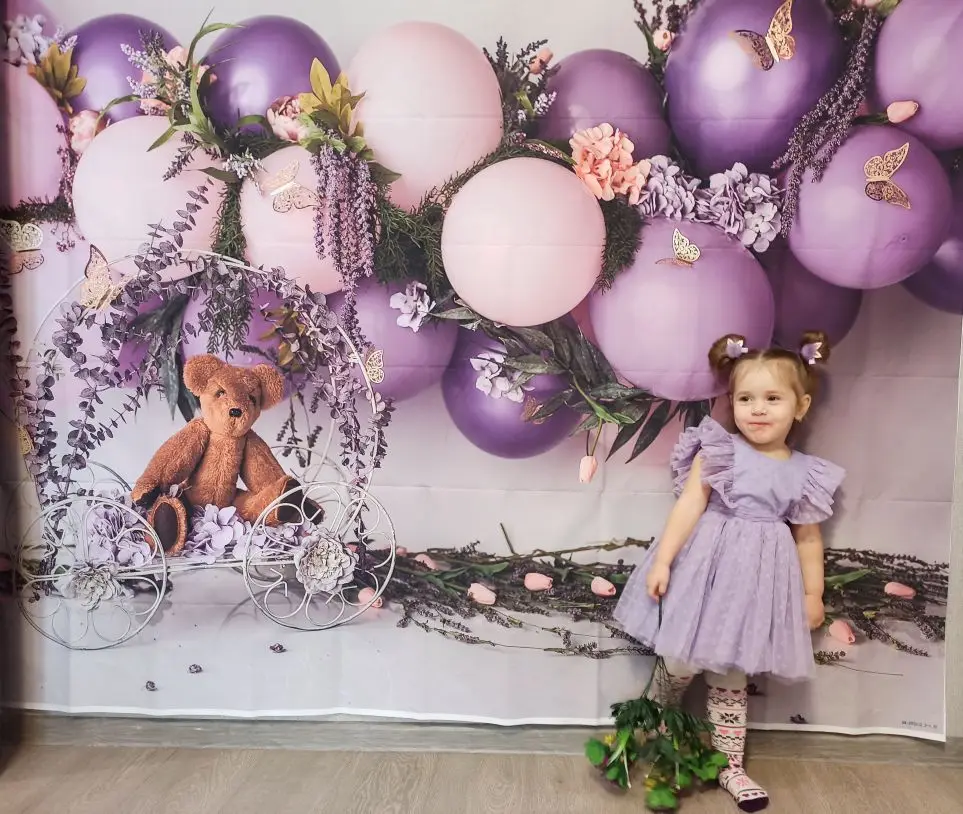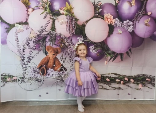 Фотофон Mehofond на 1-й день рождения с изображением девушки розовы...