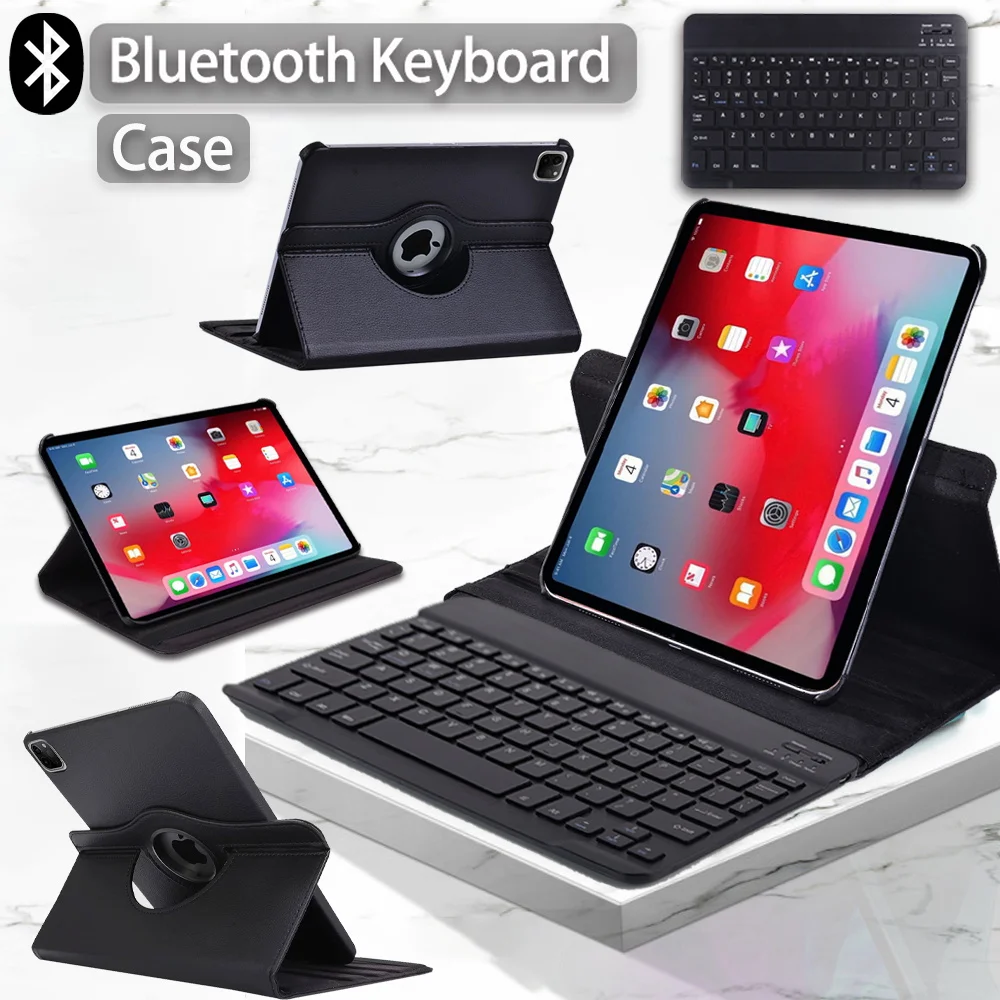 Вращающийся на 360 градусов чехол для Apple IPad Pro, 11 дюймов, 2020, 2018 Air 4, 10,9 дюйма, чехол из искусственной кожи для планшета Smart, чистый черный чехол для планшета + Bluetooth клавиатура