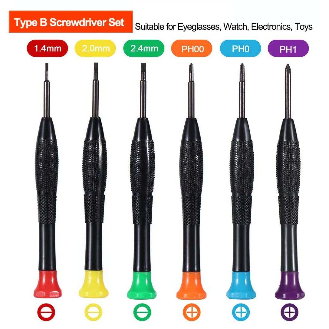 ☛Набор отверток типа B: для ремонта очков, часов, электроники, игрушек и других предметов.