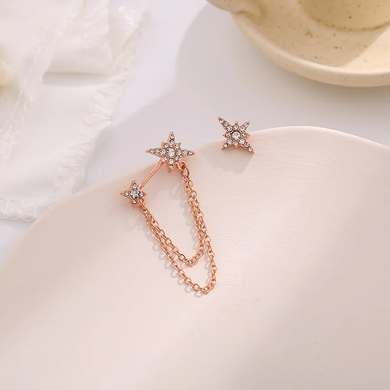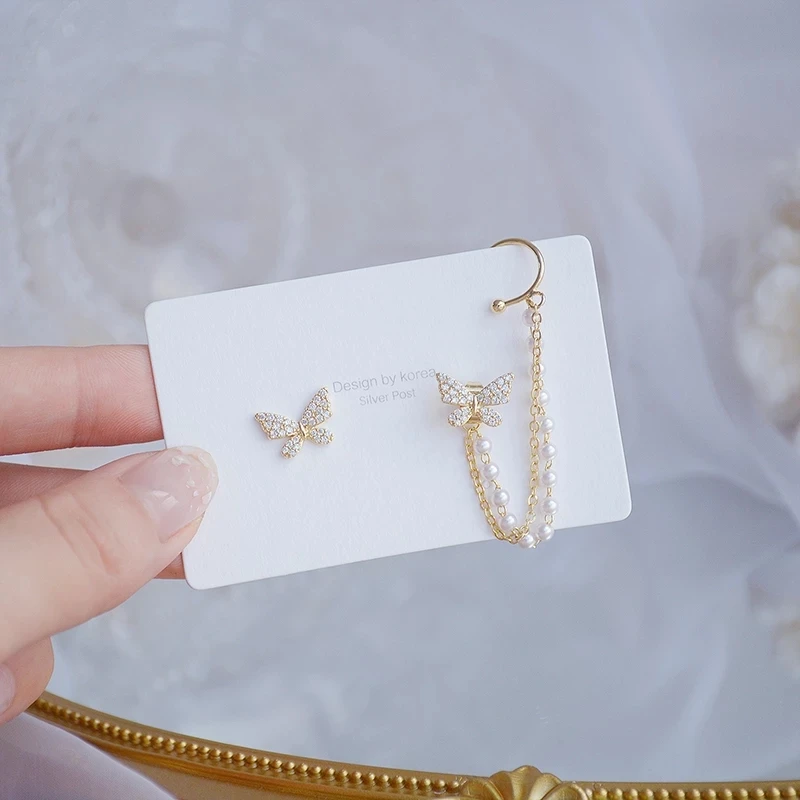 Женские винтажные серьги-гвоздики в стиле бохо, асимметричные длинные висячие серьги-кисточки золотого и серебряного цвета со звеньями и жемчугом