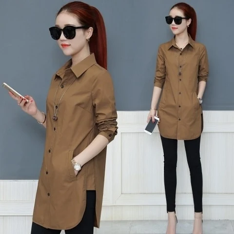 Женская блузка на весну и осень, женская рубашка, рубашка-поло с воротником, модные женские блузы