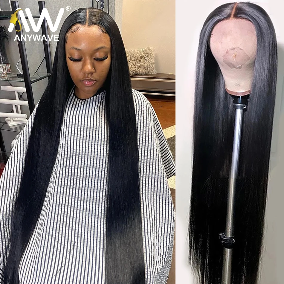 Парик из натуральных прямых волос, для чернокожих женщин, перуанский, 30, 32 дюйма, 4x4