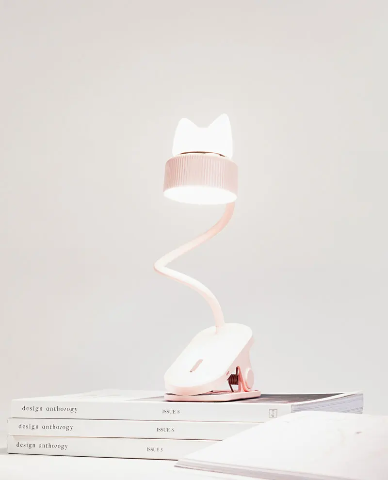 Светодиодный настольный зажим, ночник 2 в 1, зажисветильник для изголовья кровати, книги, 360 , Гибкий Светильник Зажим s-образной формы, милый кот, лампа для чтения