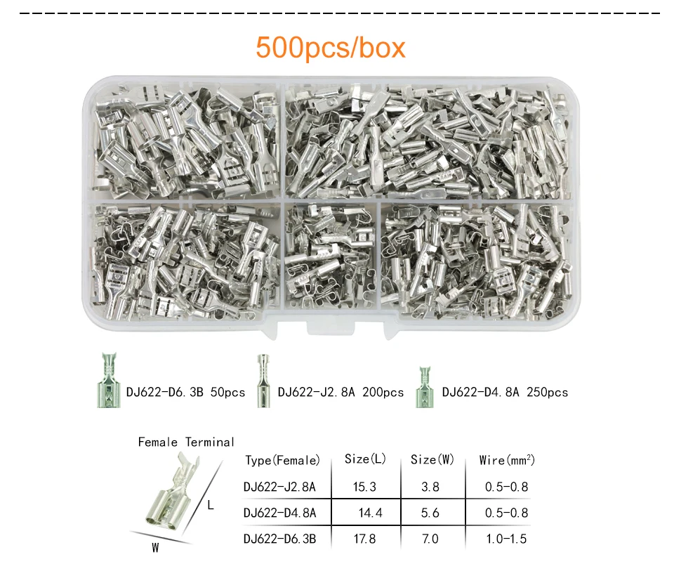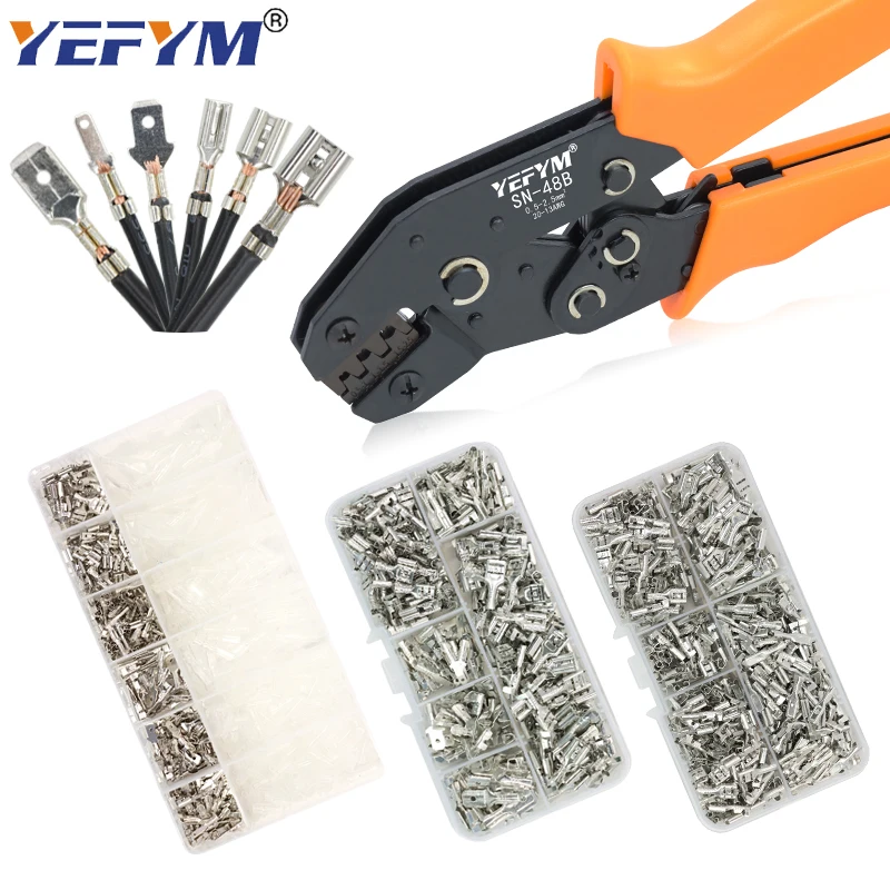 Обжимные клеммы 2,84,86,3 мм, изолированные штекер и гнездо для проводов, электрические с SN-48B обжимными клещи, набор инструментов