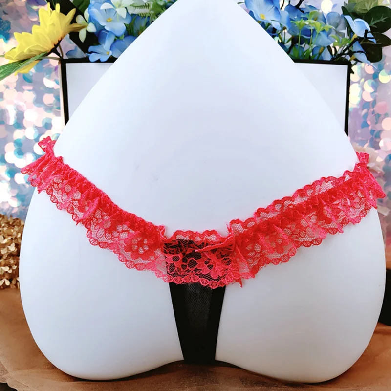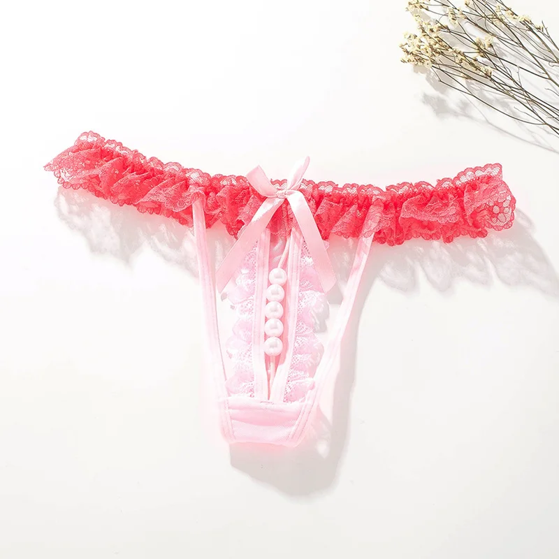 Женские прозрачные кружевные трусики размера плюс с жемчужинами, с открытой промежностью