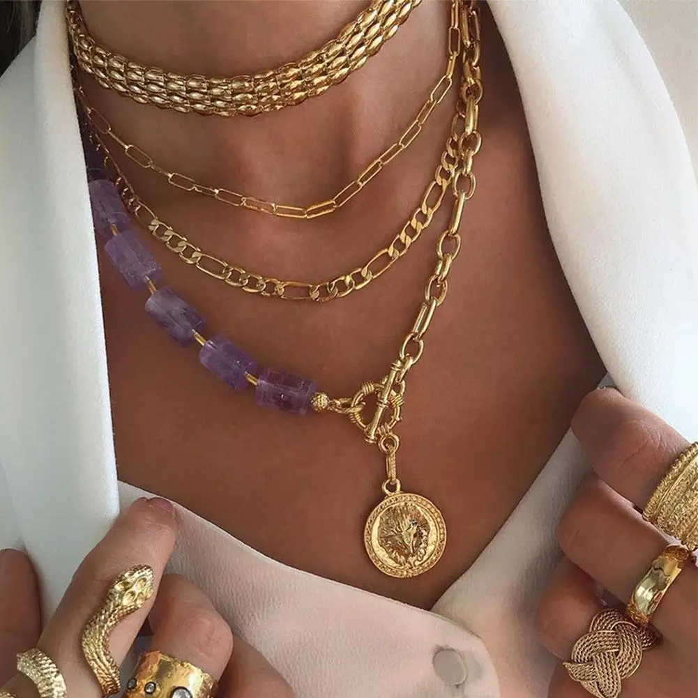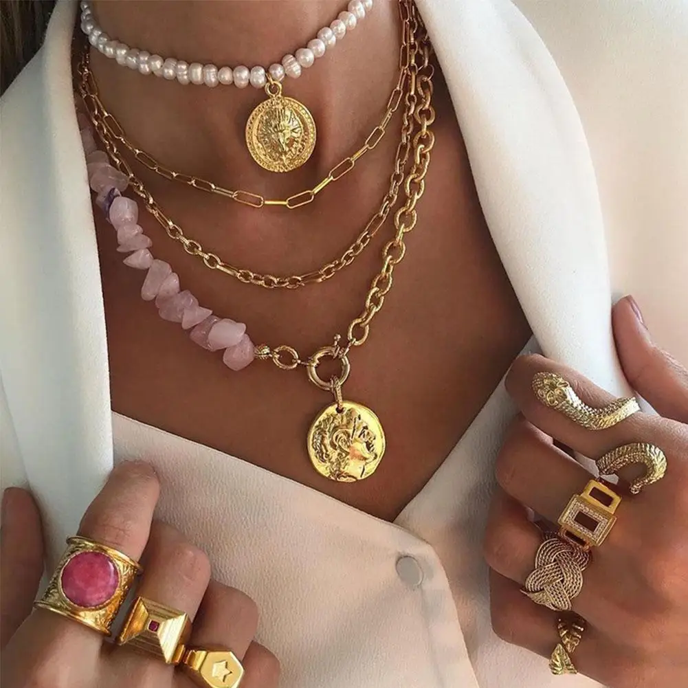Новые искусственные цепи, Многослойные Бусины из натурального камня, кулон с портом, ожерелье для женщин и девушек, ожерелье в стиле бохо, ювелирные изделия