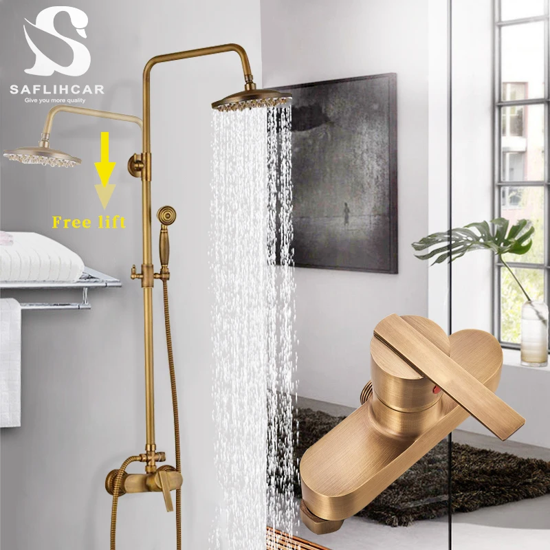 Saflihcar классический античный Ванная комната душевой набор с ручной одной ручкой настенный смеситель горячей и холодной воды душевая Системы