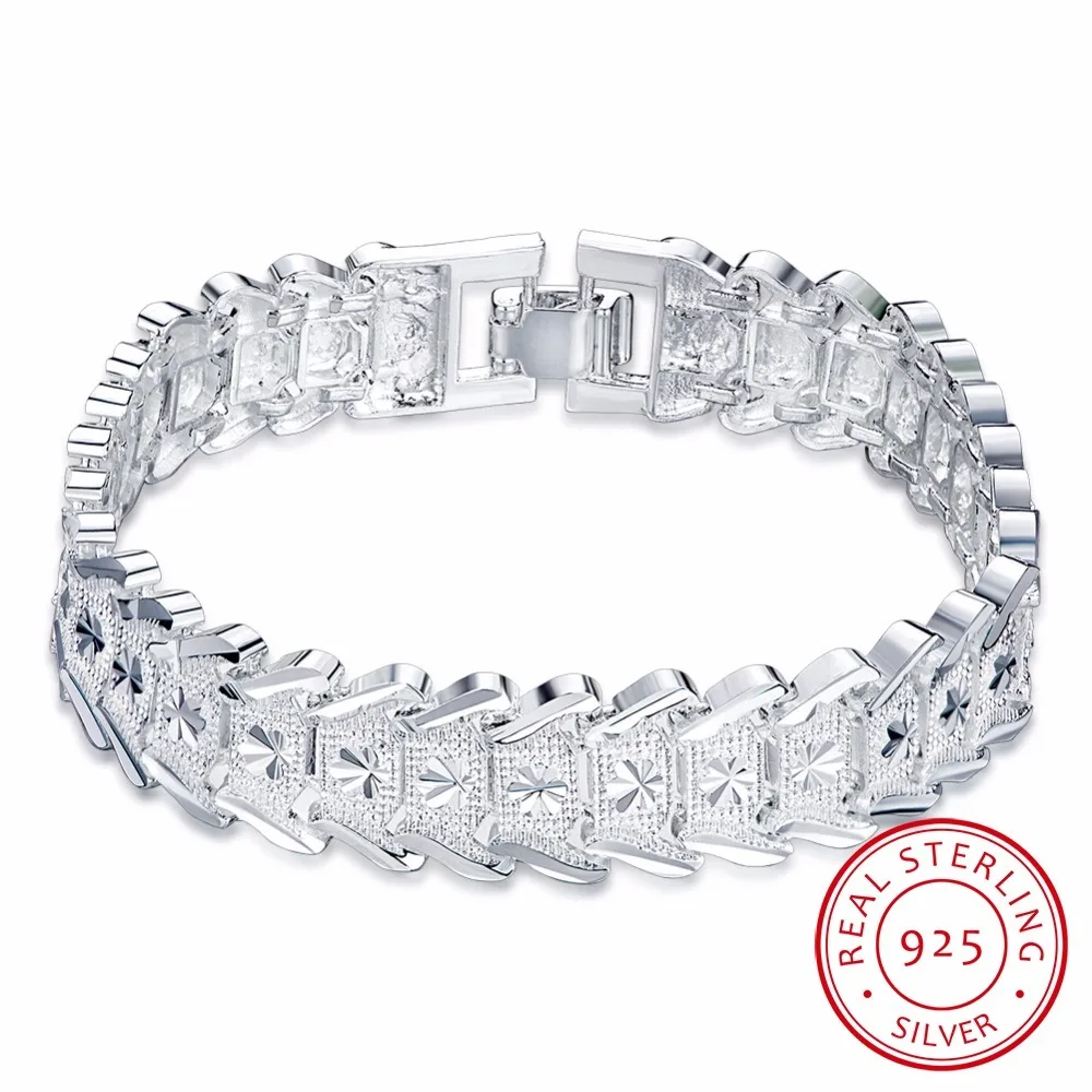 Женский широкий браслет цепи, 925 Серебряный наручный браслет с зас...