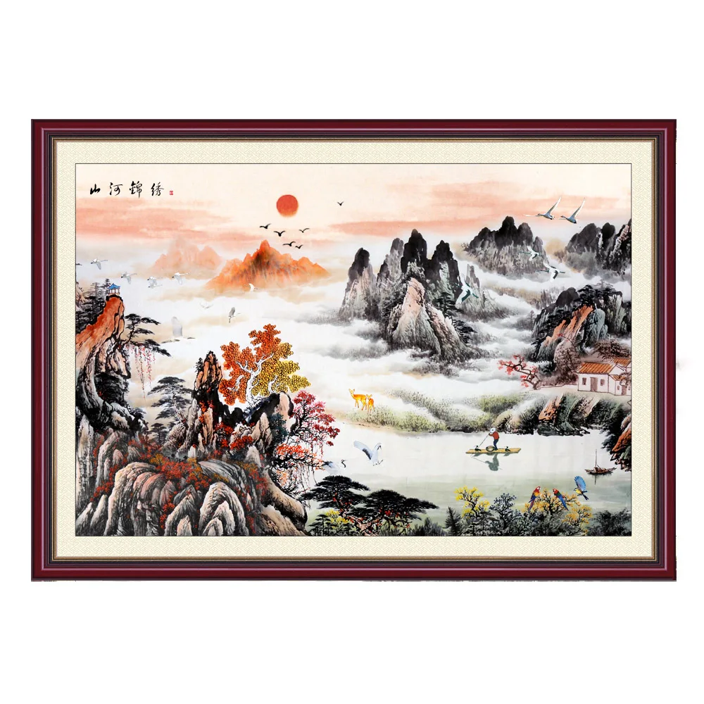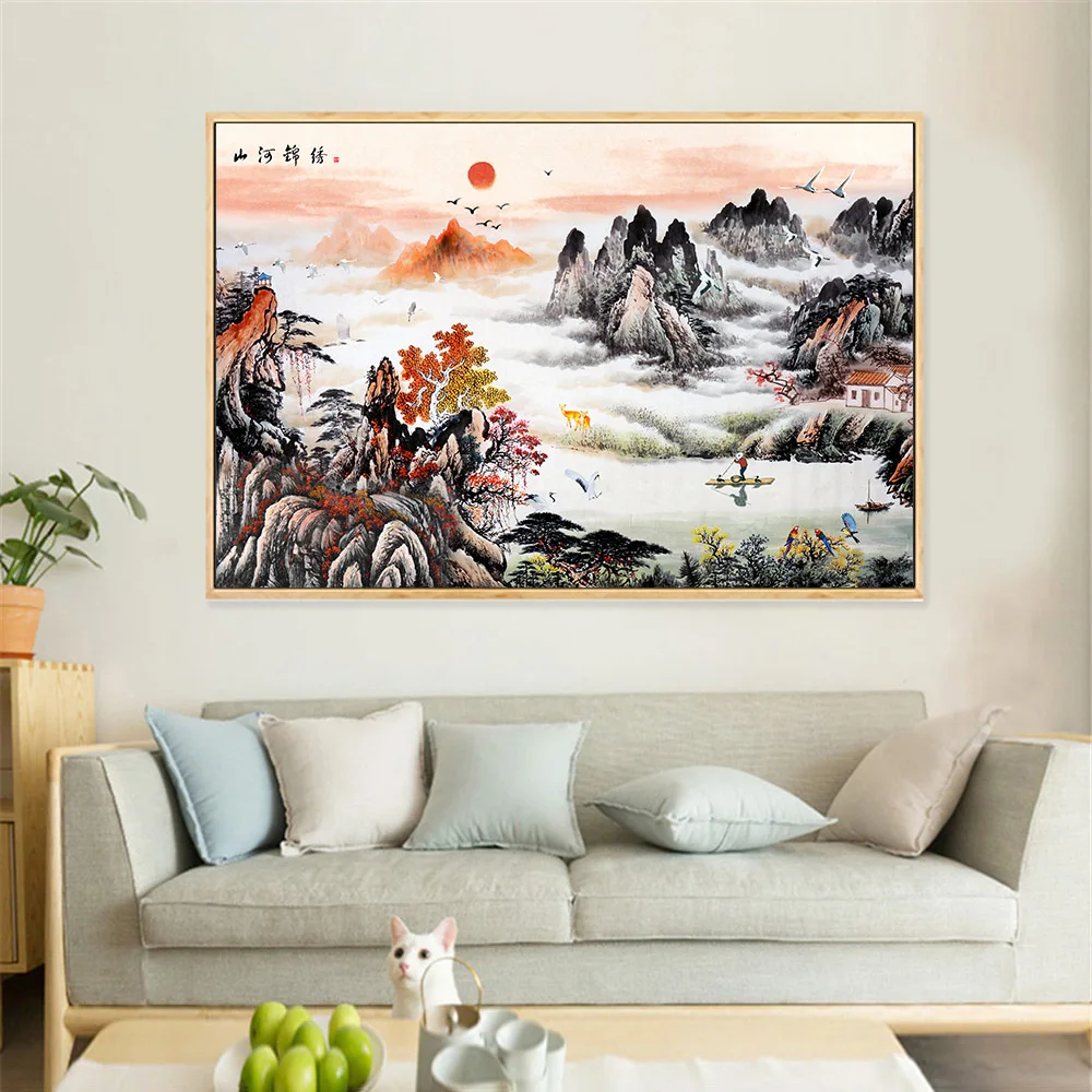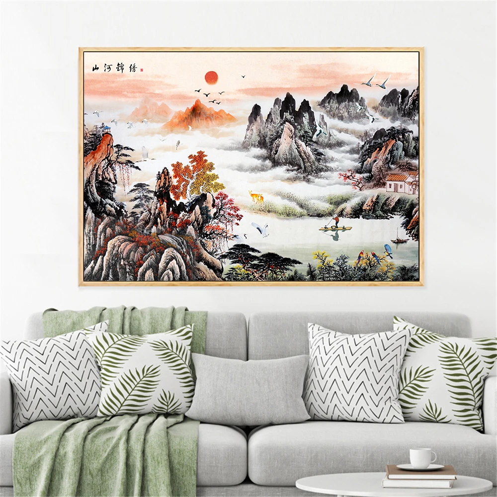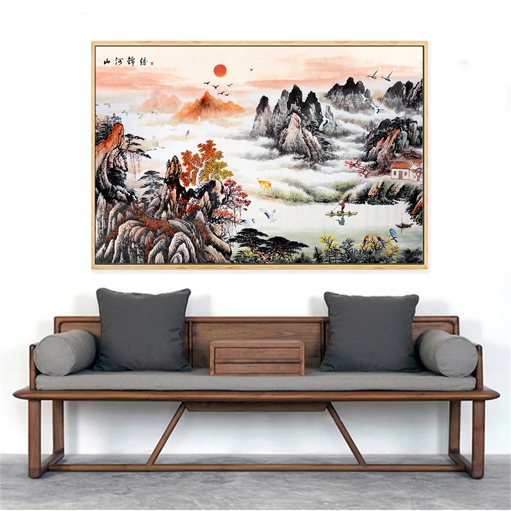Китайский пейзаж, холст, настенная живопись, традиционный постер Sansui Mountain Water, настенные картины для украшения гостиной