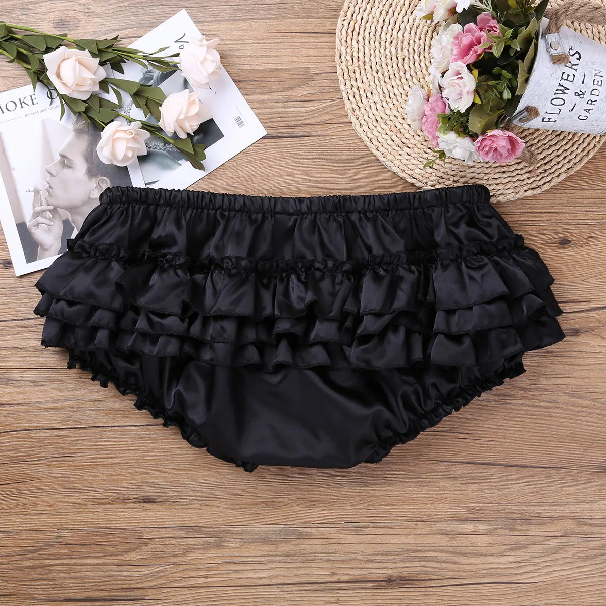 Особенности:Мужское блестящее атласное гофрированное нижнее белье-шаровары, облегающие трусики-шорты.Удобный эластичный пояс и ноги, многослойная кружевная отделка с оборками для украшения.Очень мягкие и удобные в носке, гладкие на ощупь, хорошо тянутся.Идеально подходит для ночного белья или для самостоятельного удовольствия, отличный подарок для вашей любимой.Пожалуйста, внимательно проверьте таблицу размеров перед оформлением заказа. Ручная и машинная стирка.