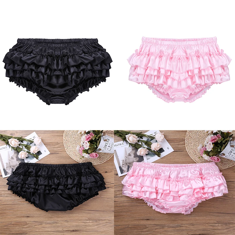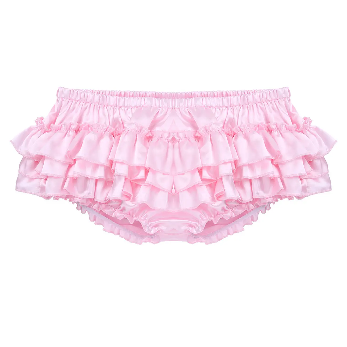 Для мужчин s Нижнее Белье Розовое трусики блестящие атласные трусики с рюшами для подгузников, шорты для младенцев, нижнее белье, Для мужчин сексуальные Эротические трусики трусы-шорты
