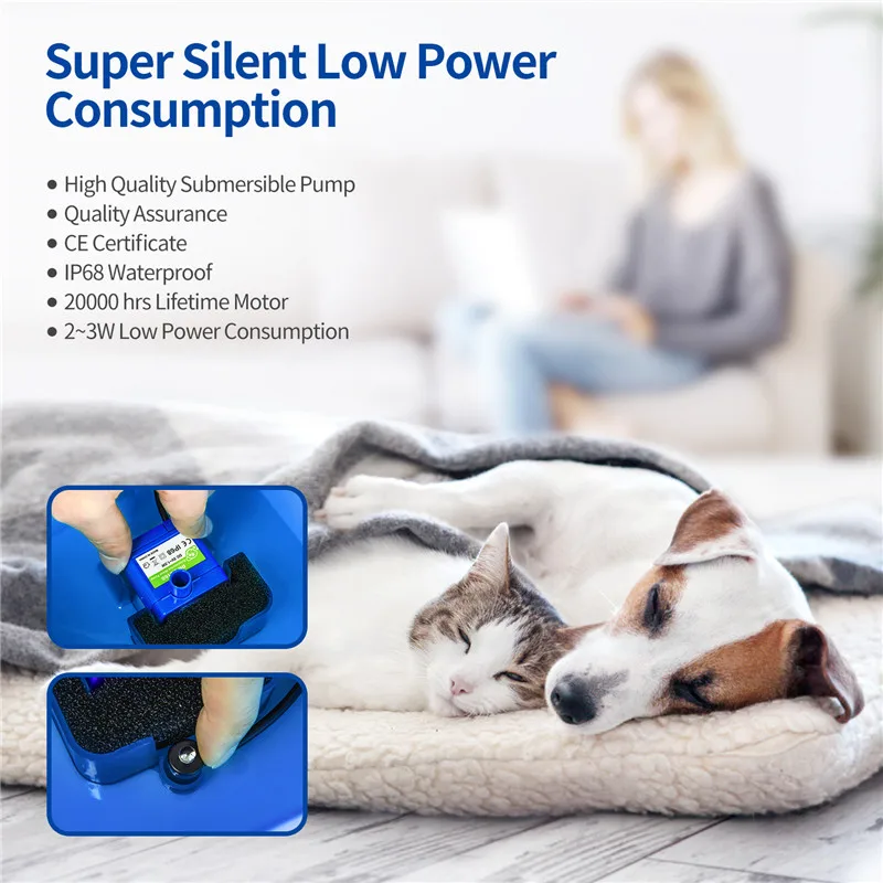 【 4 система фильтрации 】наш водный фонтан для домашних животных разработан с 4 фильтрационными системами (1 хлопок высокой плотности, 1 Смола, 1 активированный углерод и 1 хлопок высокой плотности), фильтруемый водный питомец обеспечивает здоровый, свежий и богатый кислородом Водопад для кошек, котят, собак, птиц и других маленьких домашних животных. Размер: 6.3x6.3x5in.【 Большая емкость 】наш фонтан для домашних животных разработан с большой емкостью 67 унций 2.0L. Рекомендуется, чтобы кошки выпивали около 60 мл (2 унции) на килограмм веса тела. Например, около 5 кг кошек, приблизительное количество воды составляет около 300 мл (10 унций). Ежедневное потребление воды для кошек связано с собственным размером тела кошки, емкостью упражнений и тем, любит ли кошка быть чистой, таким образом, вы можете регулярно пополнять пресную воду в соответствии с различными потребностями кошки.【Легко установить и использовать 】 эта чаша для воды для домашних животных занимает всего несколько минут, чтобы настроить. Сменный питомец фонтанный фильтрующий сердечник, водяной насос Съемный и моющийся. Разборка для очистки и технического обслуживания проста, практически любой шум (ниже 30 дБ) и низкое потребление не только означает энергоэффективность и безопасность, но и длительный срок службы насоса.【WATER уровень светодиодный INDICATOR】The светодиодный светильник индикатор фонтан для домашних животных, позволяет легко найти даже в темное время суток, а также избежать ногами его в ночное время. Дизайн полупрозрачного окна уровня воды может четко видеть внутреннюю емкость воды и качество воды, так что нам не нужно открывать фонтан для домашних животных каждый раз, чтобы проверить, следует ли добавлять и менять воду.【 3 дизайна потока цветов 】есть 3 различных рисунка потока нашего кота диспенсер для воды на ваш выбор (нежный плоский верх, пузырчатая или бегущая вниз сопло). Обычно для изучения этого водного фонтана требуется несколько минут, затем кошки будут пить воду из него. Он предоставляет больше возможностей для ваших питомцев и привлекает их, чтобы пить больше воды. Если есть какие-либо проблемы, пожалуйста, не стесняйтесь связаться с нами, мы поможем вам в течение 24 часов.
