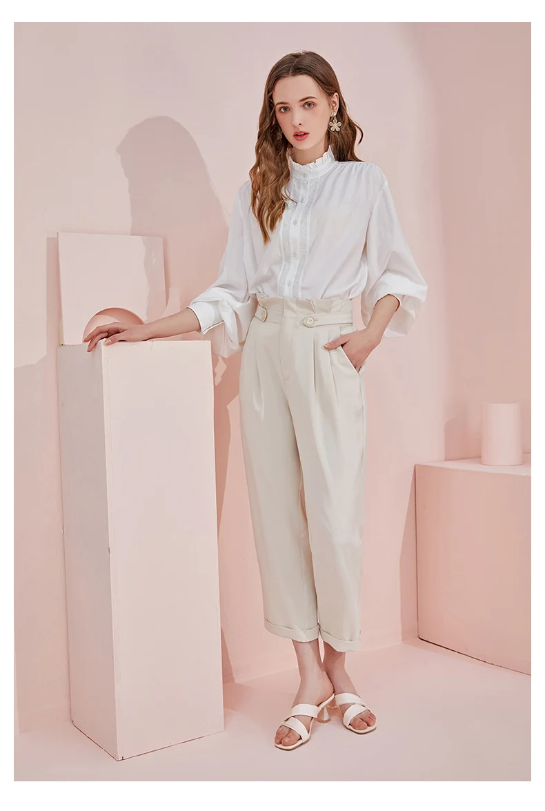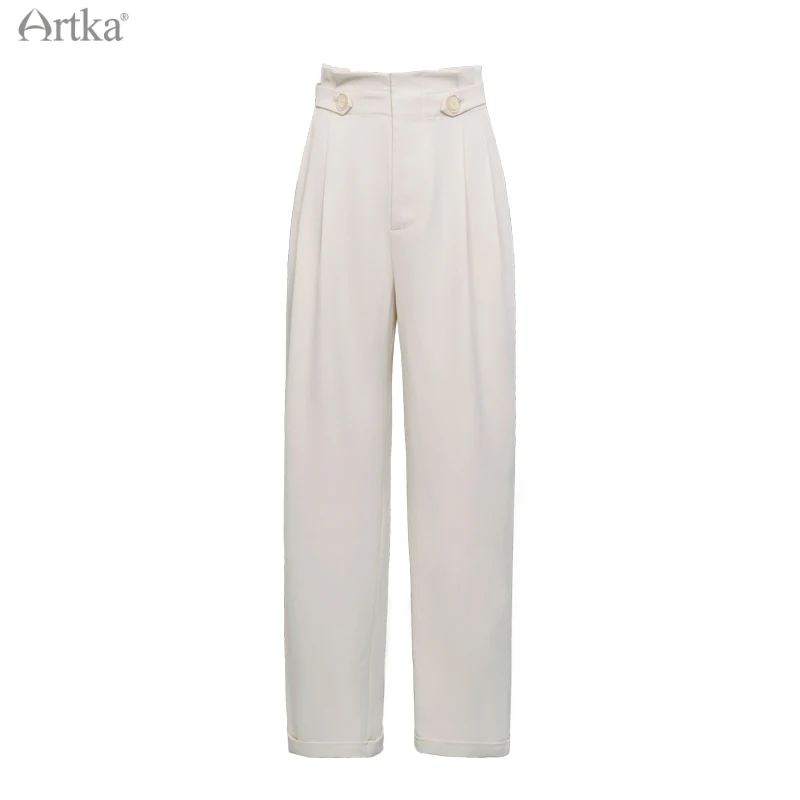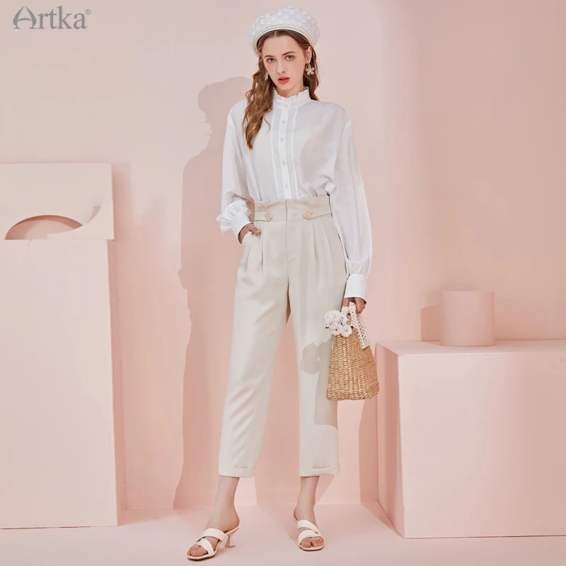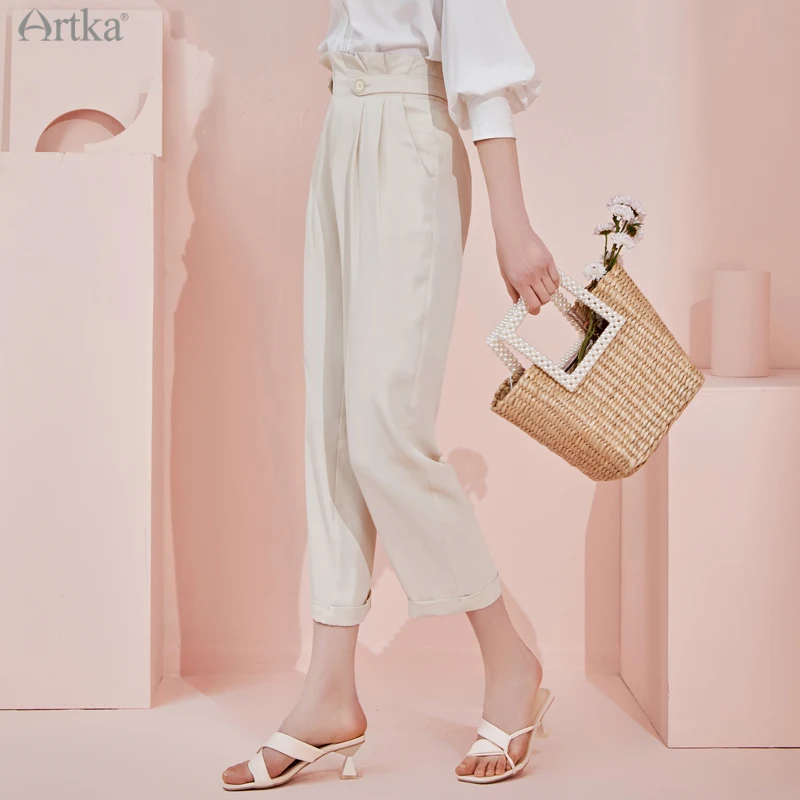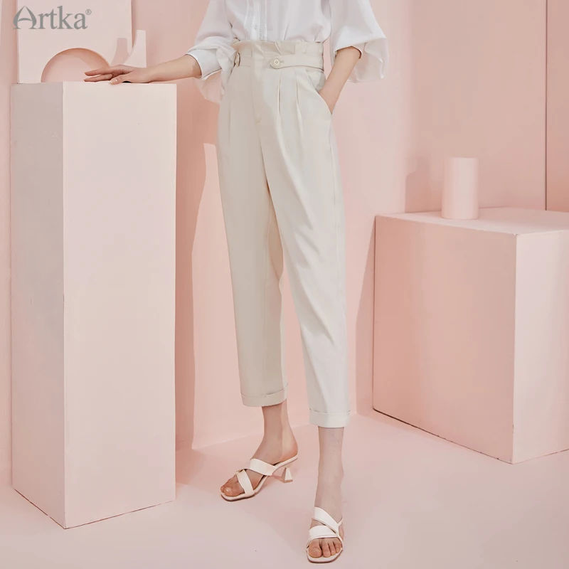Женские офисные брюки ARTKA, повседневные Прямые брюки до щиколотки с высокой талией и карманами, KA22015X, весна 2021