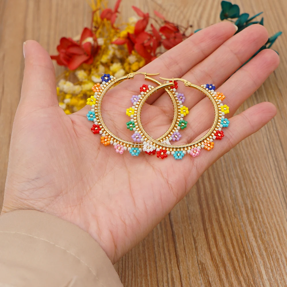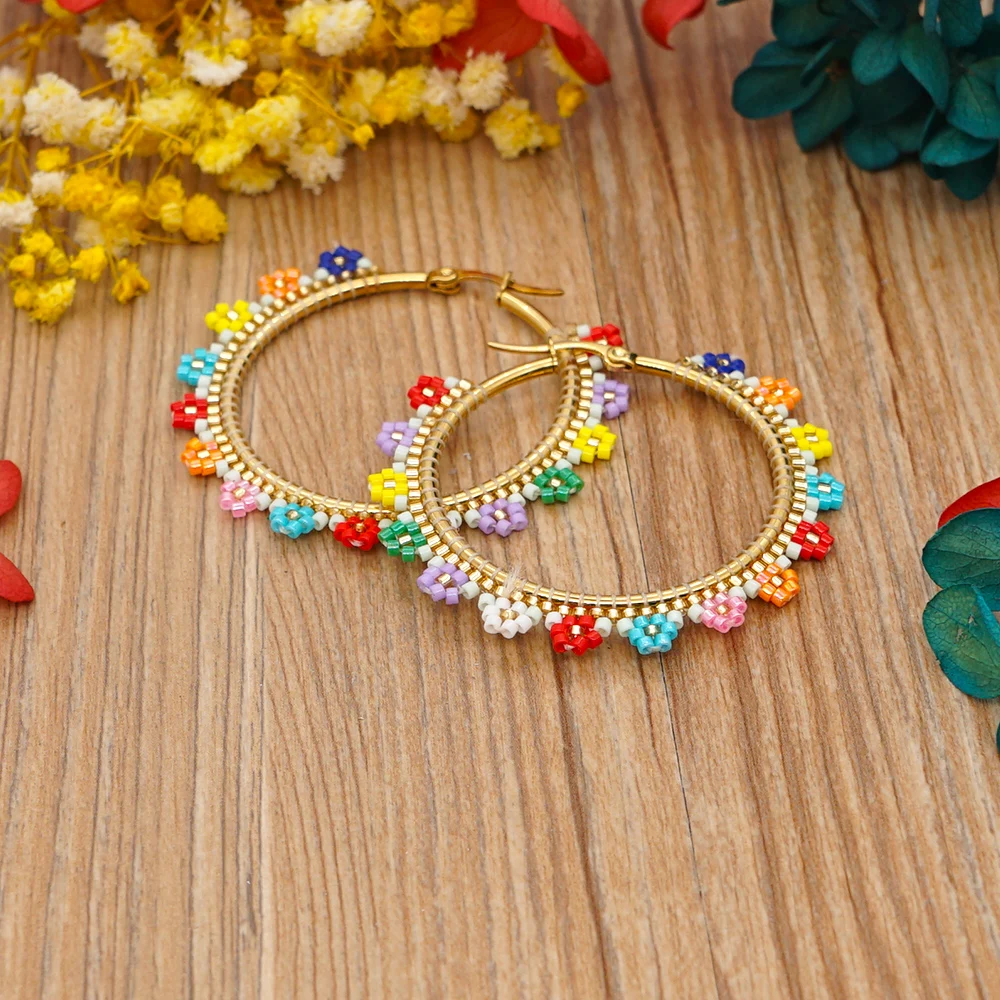 Go2boho Miyuki цветочные серьги, богемные серьги-кольца для женщин, подарок, красочные ювелирные изделия, бусы ручной работы, тканые Pendientes ювелирные изделия