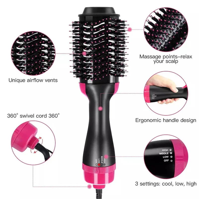 ♦3-в-1 один шаг фен и стайлер вольюмайзер-Vimpro Фен-щетка представляет собой идеальное сочетание в фен, щипцы для завивки волос, выпрямитель для волос, который разработан, чтобы доставить великолепный объем и блестящий блеск в один шаг.Несколько настроек тепла, эргономичный дизайн-мощность 1000 Вт обеспечивает только правильное тепло. С вращающимся на 360 градусов шнуром питания, гибким для легкой укладки и движения. Вы получите одну щетку с горячим воздухом и 6 зажимов для волос♦Ионная технология-построена с подлинным ионным генератором для быстрого высыхания и создания стилей, полных блеска и здоровых волос. Это помогает в состоянии, разглаживает и делает волосы более блестящими, уменьшая изящество и статичность.♦Стилизация в пределах быстро-Уникальный дизайн овальной кисти быстро создает объем у корня и красиво полноват локоны или волны на концах, в то время как воздух свободно течет через щетку, чтобы быстрее высушить волосы, превосходно экономьте ваше время и Освободите руки.