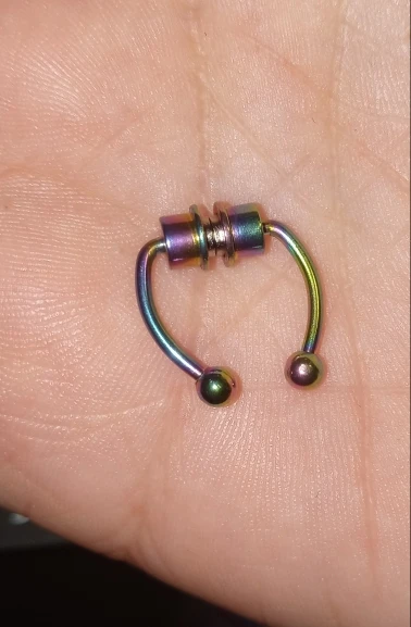 This magnetic septum ring came exactly as you see on this listing however it's not very magnetic at all. The one I recieved is also very crooked as well. I was actually quite dosappointed in this product.To get it to actually work I had to put it in an area in my nose way higher than a real septum piercing would be. Even then though it was basically hanging by a thread. The lightest touch or movement would make it fall apart. If this had been a stronger magnet then it probably would have worked pretty well. Unfortunately it's completely useless because of it's weak magnet. so disappointing. No communication with seller.