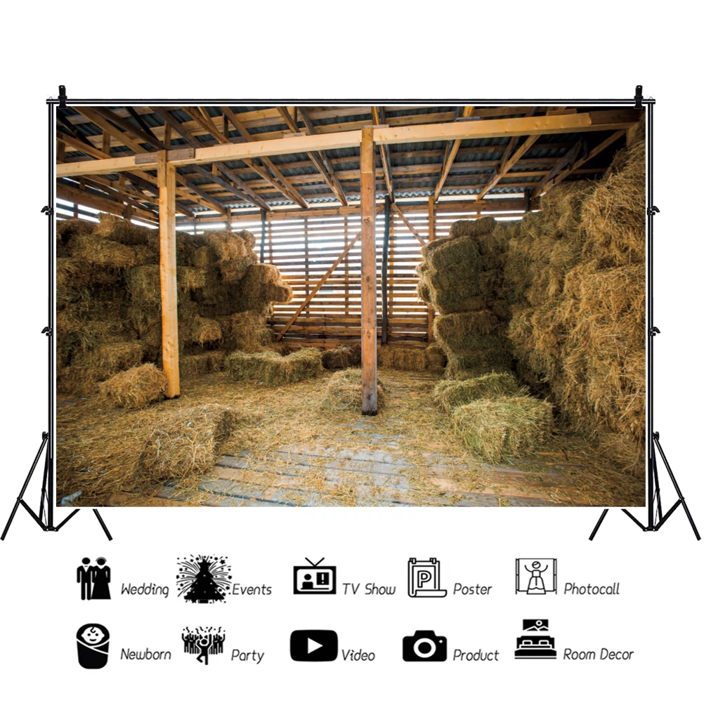 Laeacco склад Старое дерево сельская ферма пустой 3D узор стог сена интерьер фотографический фон фотозона Фото фоны