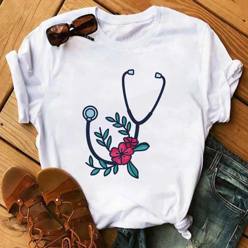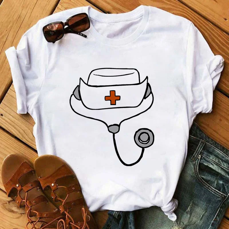 Летняя женская футболка с принтом медсестры, Повседневная футболка ...