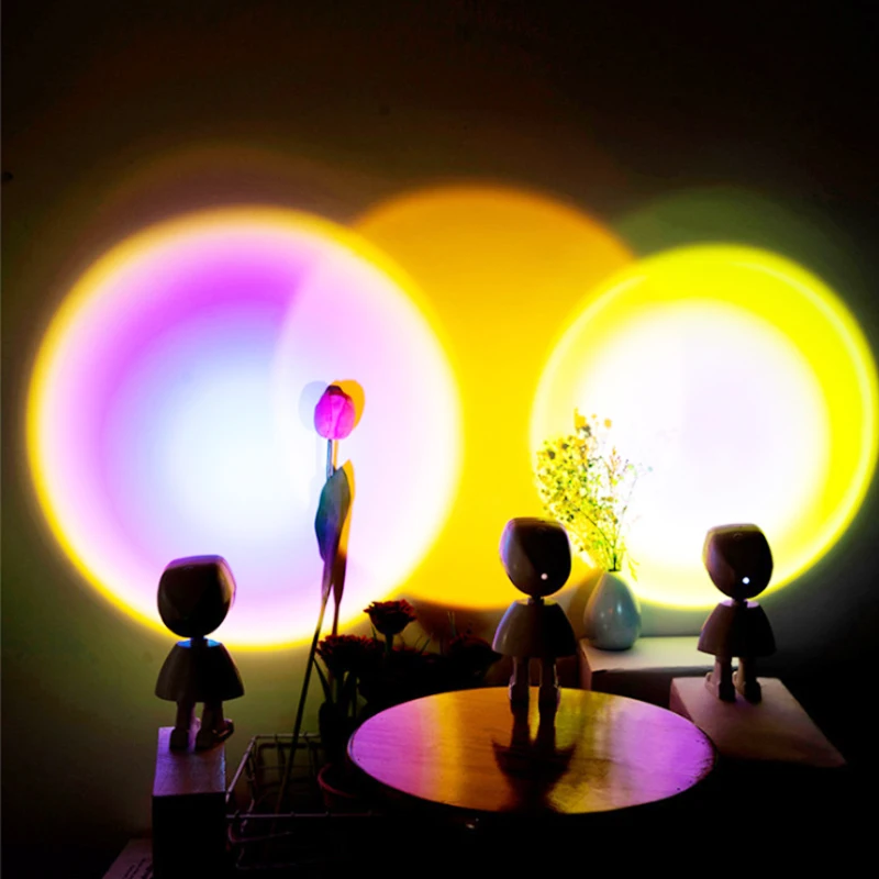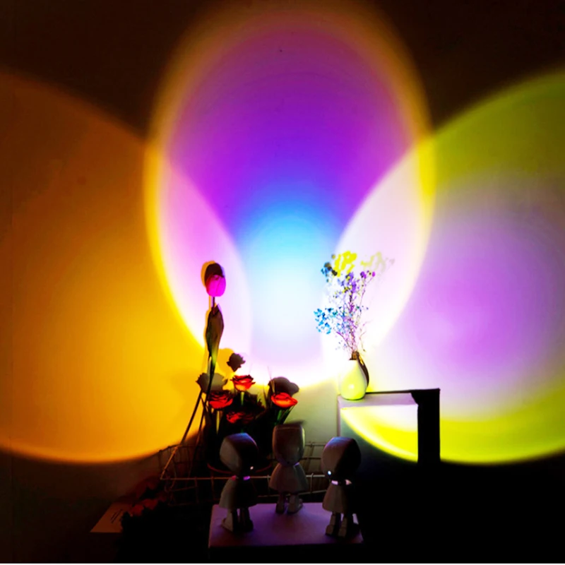 Новый Радужный проектор С закатом, атмосферный светодиодный светильник для домашней комнаты, фон для украшения стен, Красочный ночник