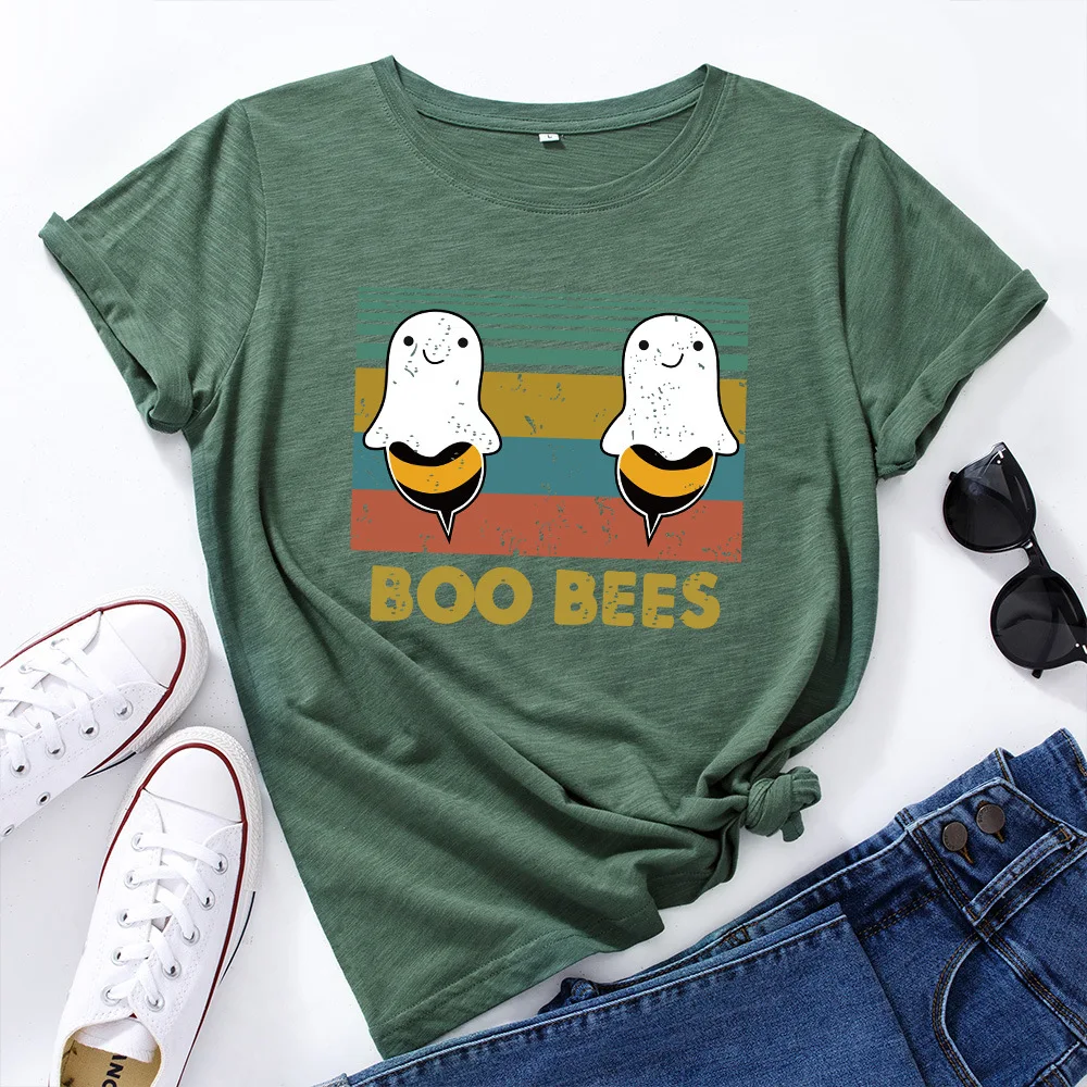 Женская футболка с круглым вырезом, коротким рукавом и принтом в виде пчелы
