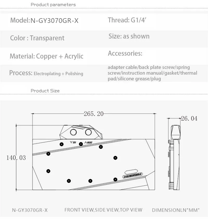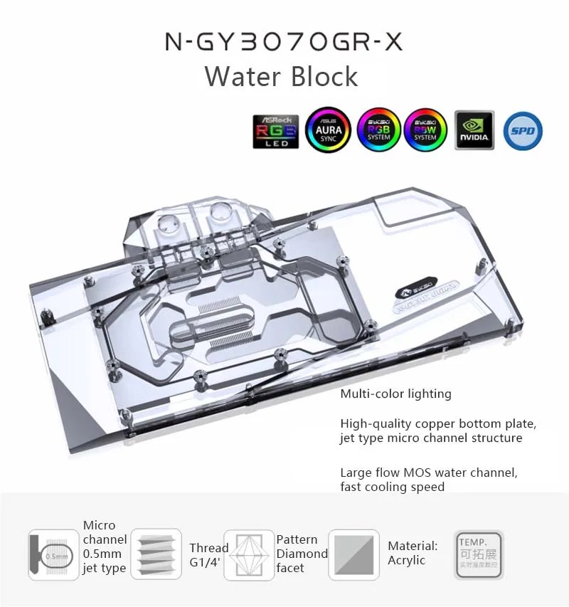 Модель: N-GY3070GR-X Бренд: Bykski Материал: гальванизированная медь высокой чистоты/прозрачный акрил