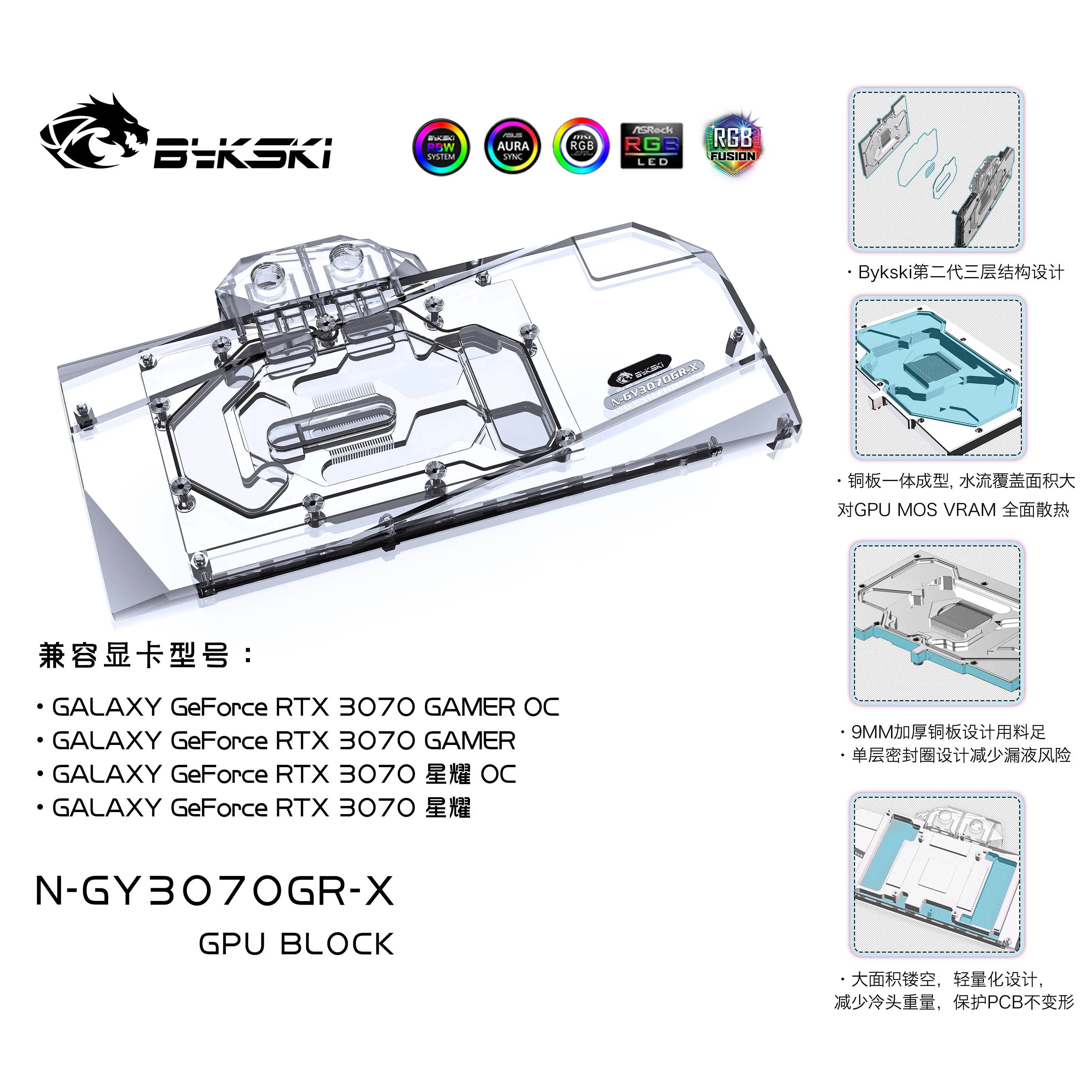 Водоблок Bykski для геймеров GALAXY RTX3070, RTX3070, OC, RTX3070, RTX3070, OC GPU, полное покрытие, медный блок радиатора