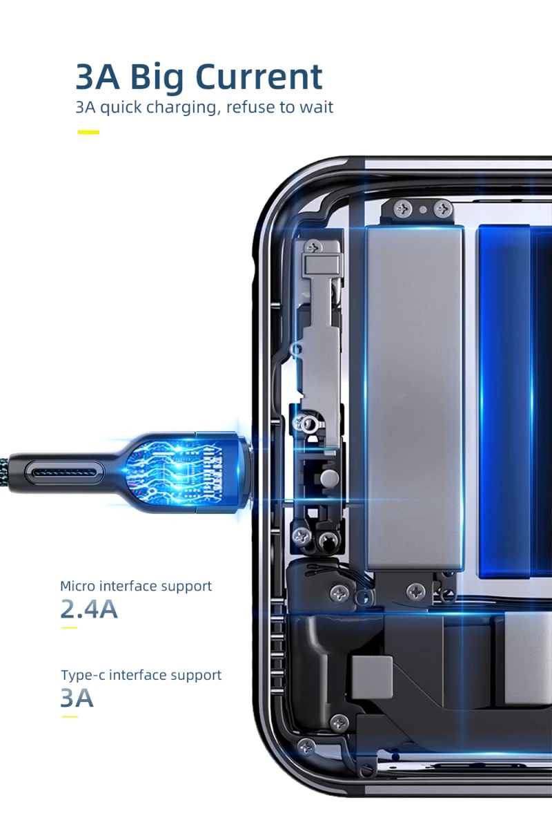 1. Прочный кабель для передачи данных, полностью модернизированный, поддерживает быструю зарядку, полный охват и плотное плетение.