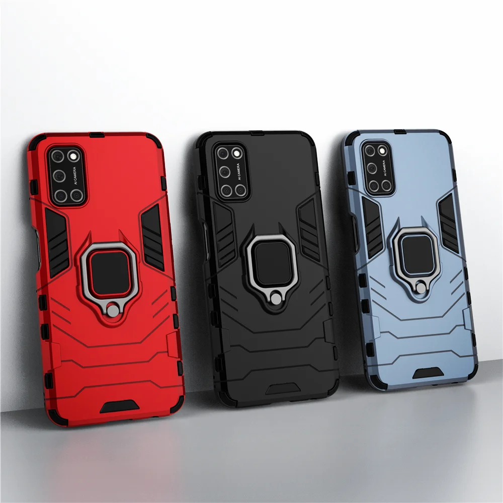 Для OPPO A52 A72 A92 чехол с кольцом и подставкой бампер силиконовый + PC чехол для телефона OPPO A52 A72 A92 A92s A 52 72 92 6.5in Funda Capa