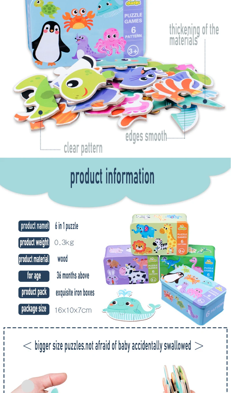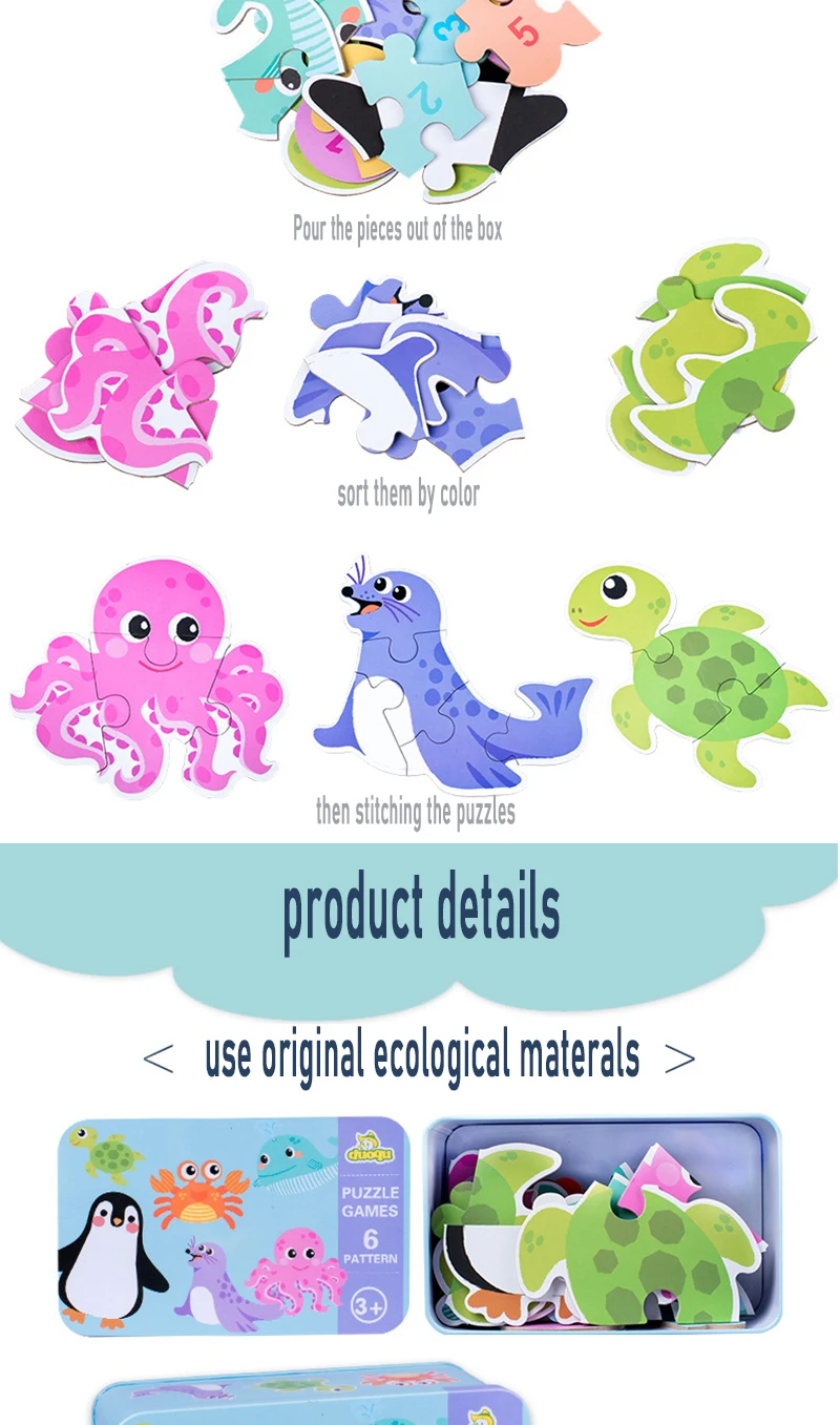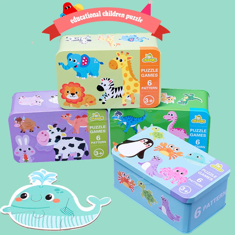 Детский креативный деревянный пазл, железная коробка, детский сад, раннее образование, Мультяшные животные, дорожный пазл, познавательная интерактивная игрушка