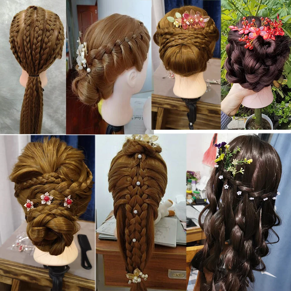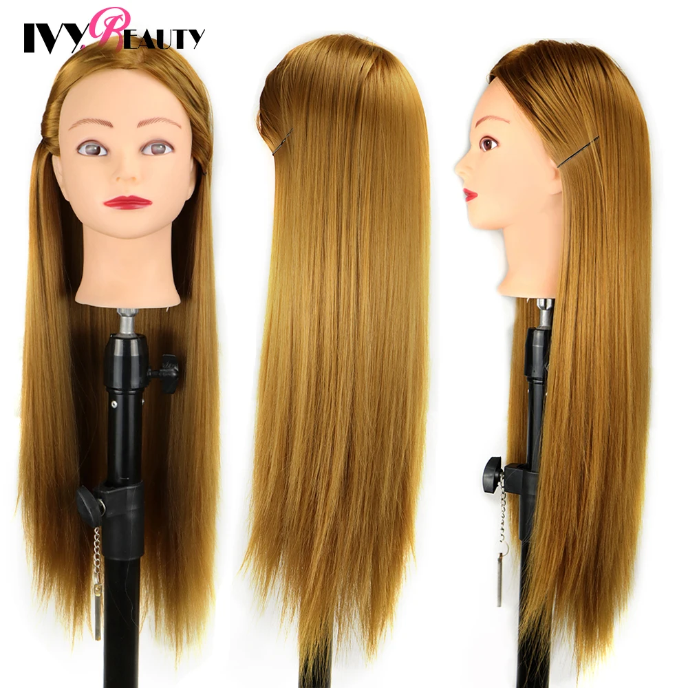 Голова куклы для парикмахеров Высокая температура Синтетические светлые волосы манекен головы обучения головы для оплетки парикмахерский стиль