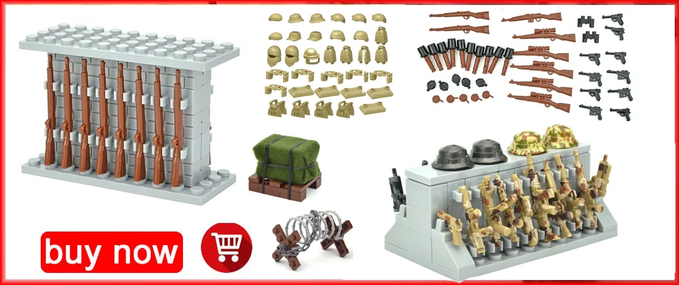 Мешки с песком, военные аксессуары, кирпичи, масляный барабан, оружие спецназа, солдаты Второй мировой войны, части MOC, строительные блоки, серия военных сцен
