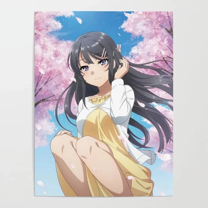 Настенное художественное оформление, постер с изображением зайчика и девочки Senpai, домашнее украшение, современная картина с цветами вишни для спальни, модульные картины